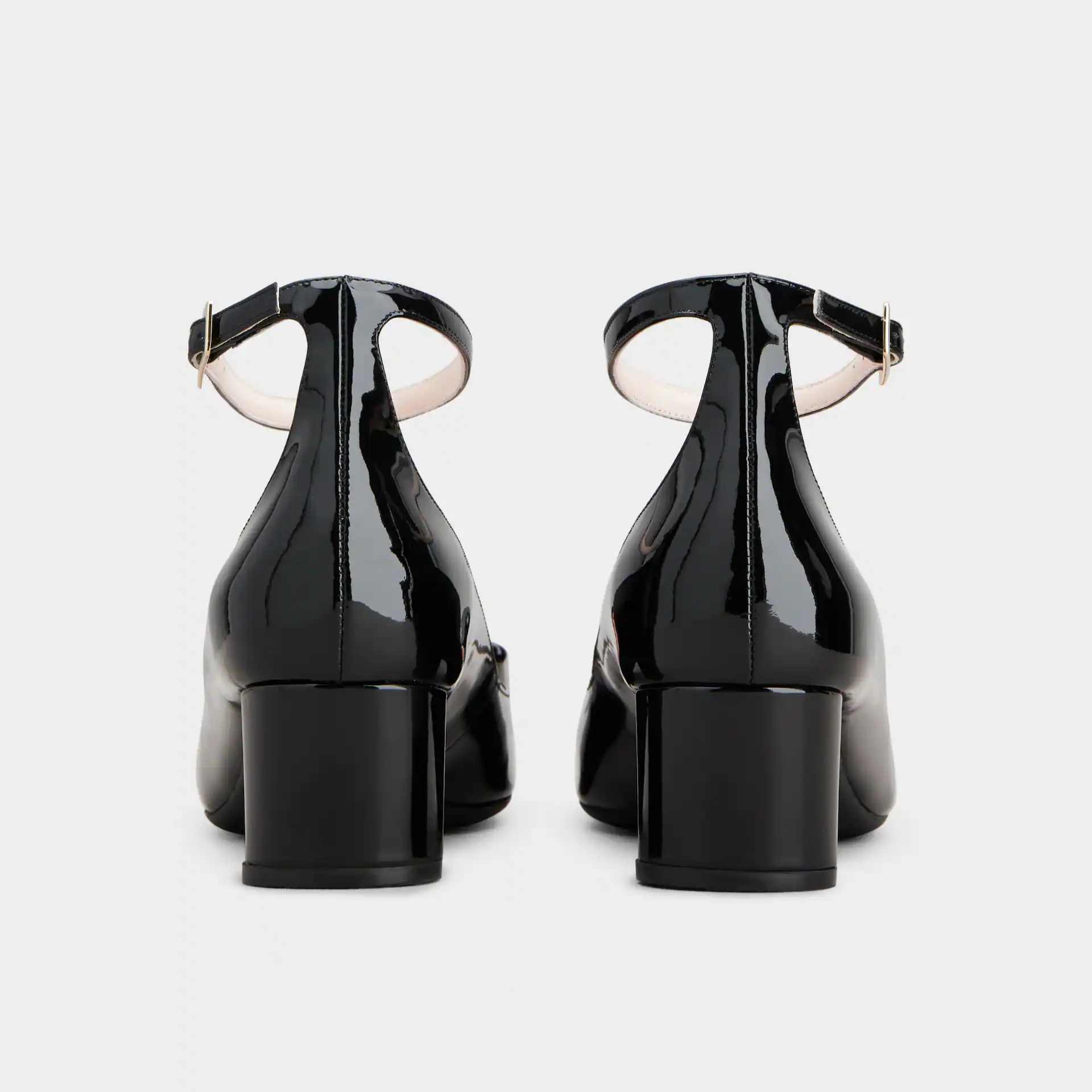 Roger Vivier Ankle Strap U Look Pumps High Heels In Black Patent Leather With Lacquered Metal Buckle (Heel Height 4.5cm)