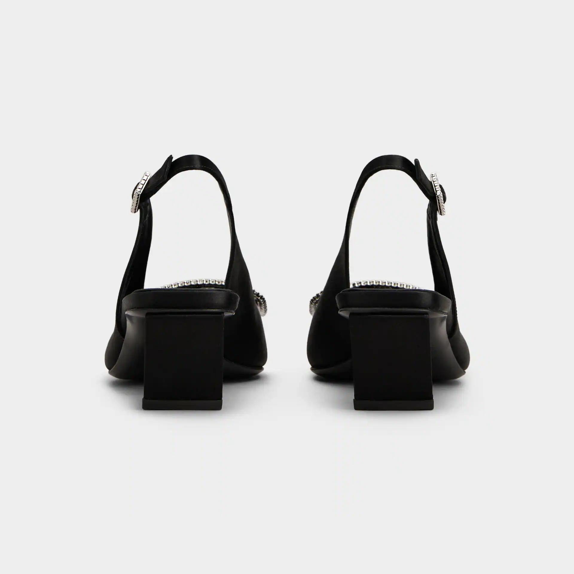 Roger Vivier Belle Viver Slingback Pumps High Heels In Black Satin With Crystal Buckle (Heel Height 4.5cm)