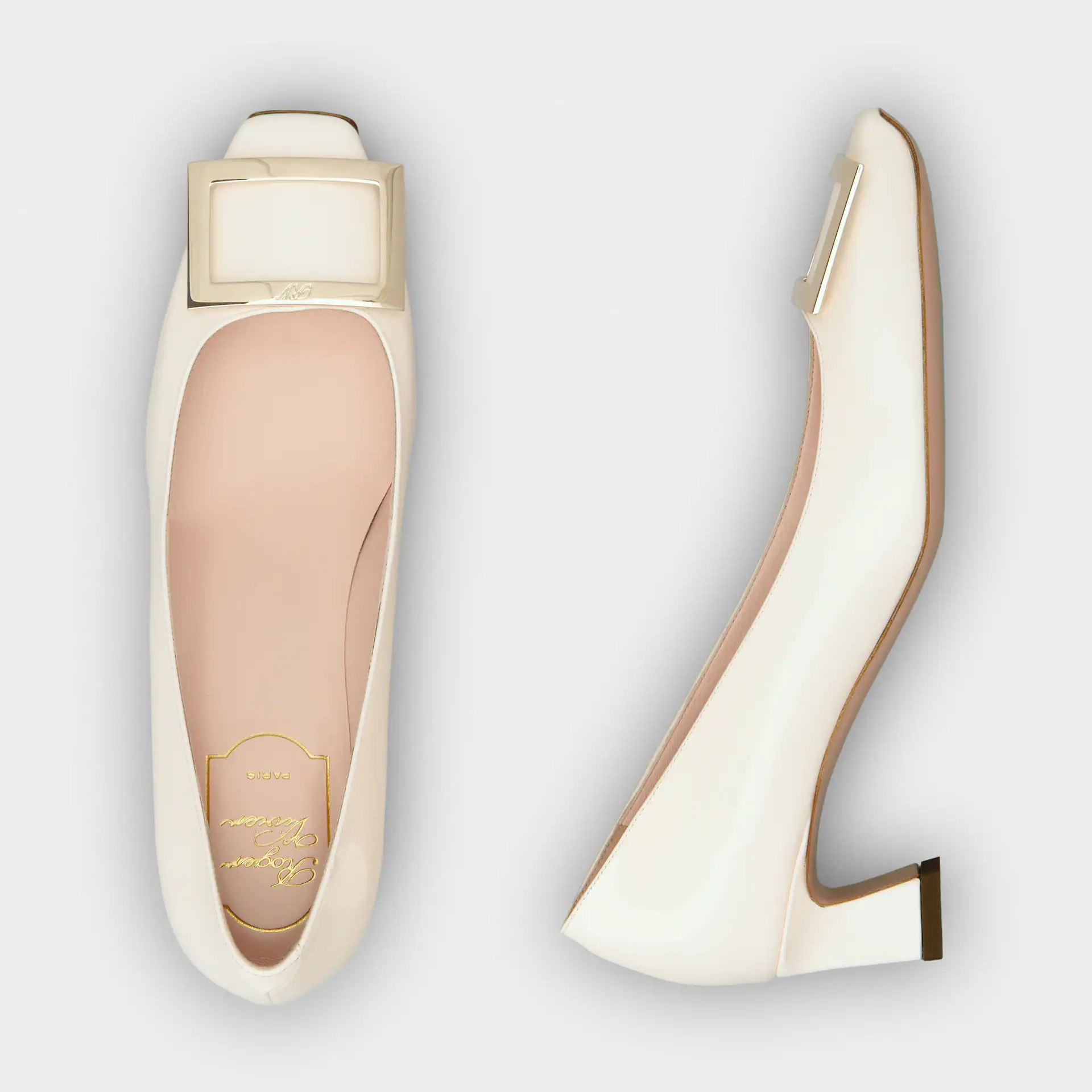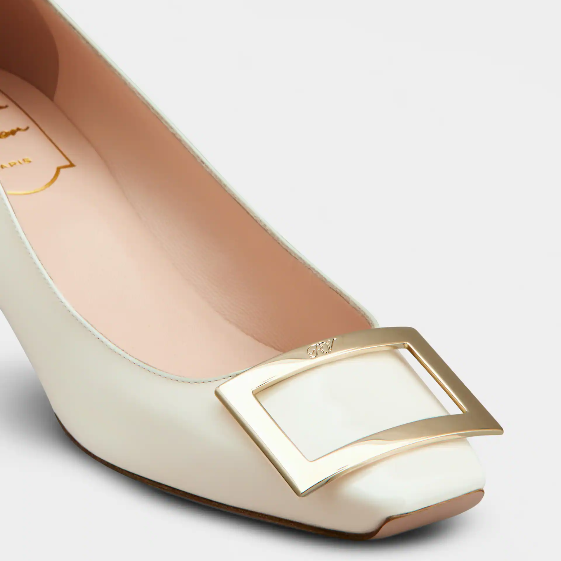 Roger Vivier Trompette Pumps High Heels In White Patent Leather With Metal Buckle (Heel Height 4.5cm)