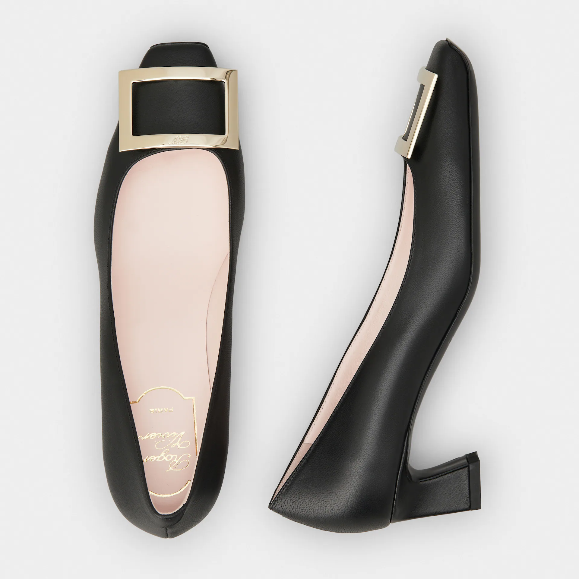Roger Vivier Trompette Pumps High Heels In Black Leather With Metal Buckle (Heel Height 4.5cm)