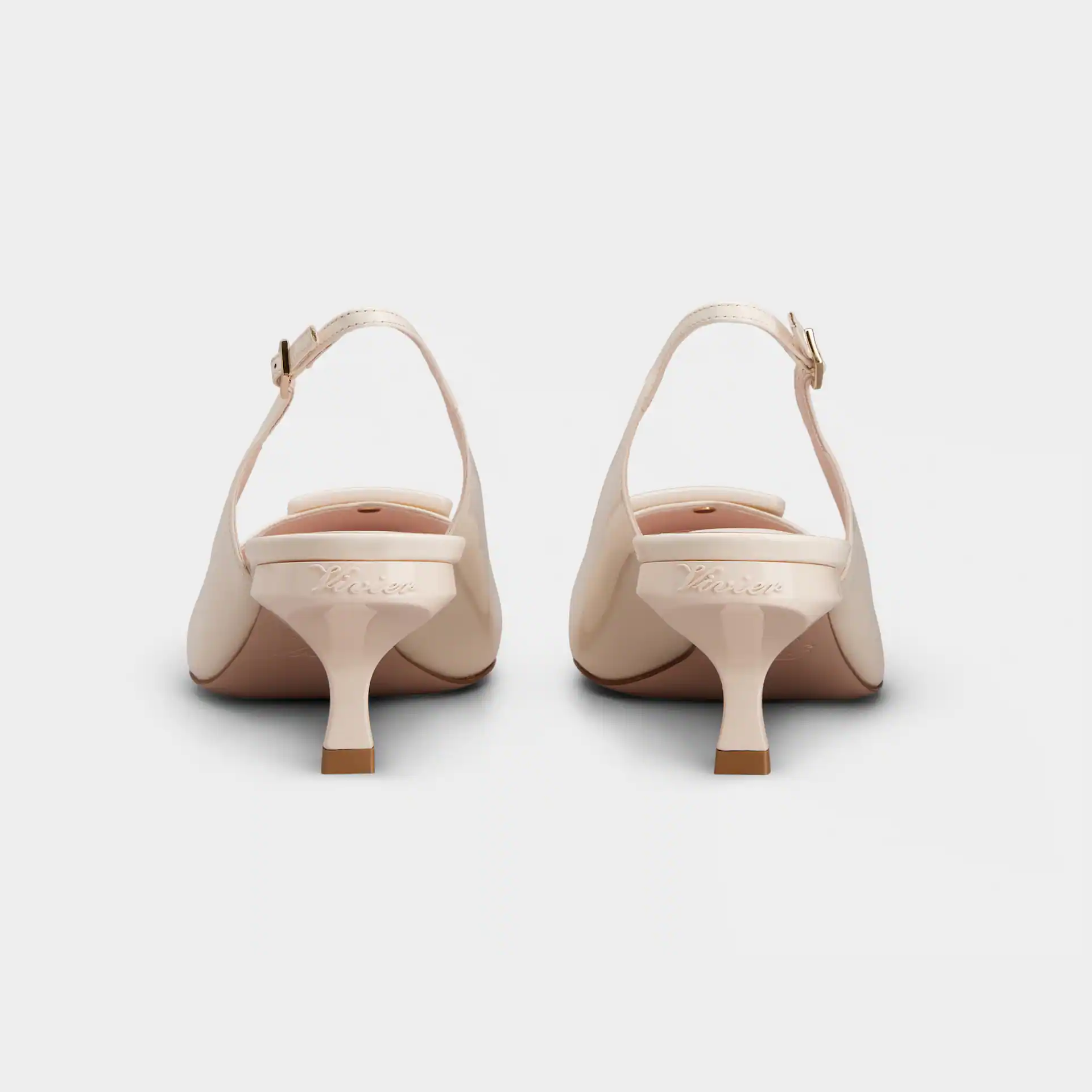 Roger Vivier Virgule Slingback Pumps High Heels In White Patent Leather With Lacquered Metal Buckle (Heel Height 5.5cm)