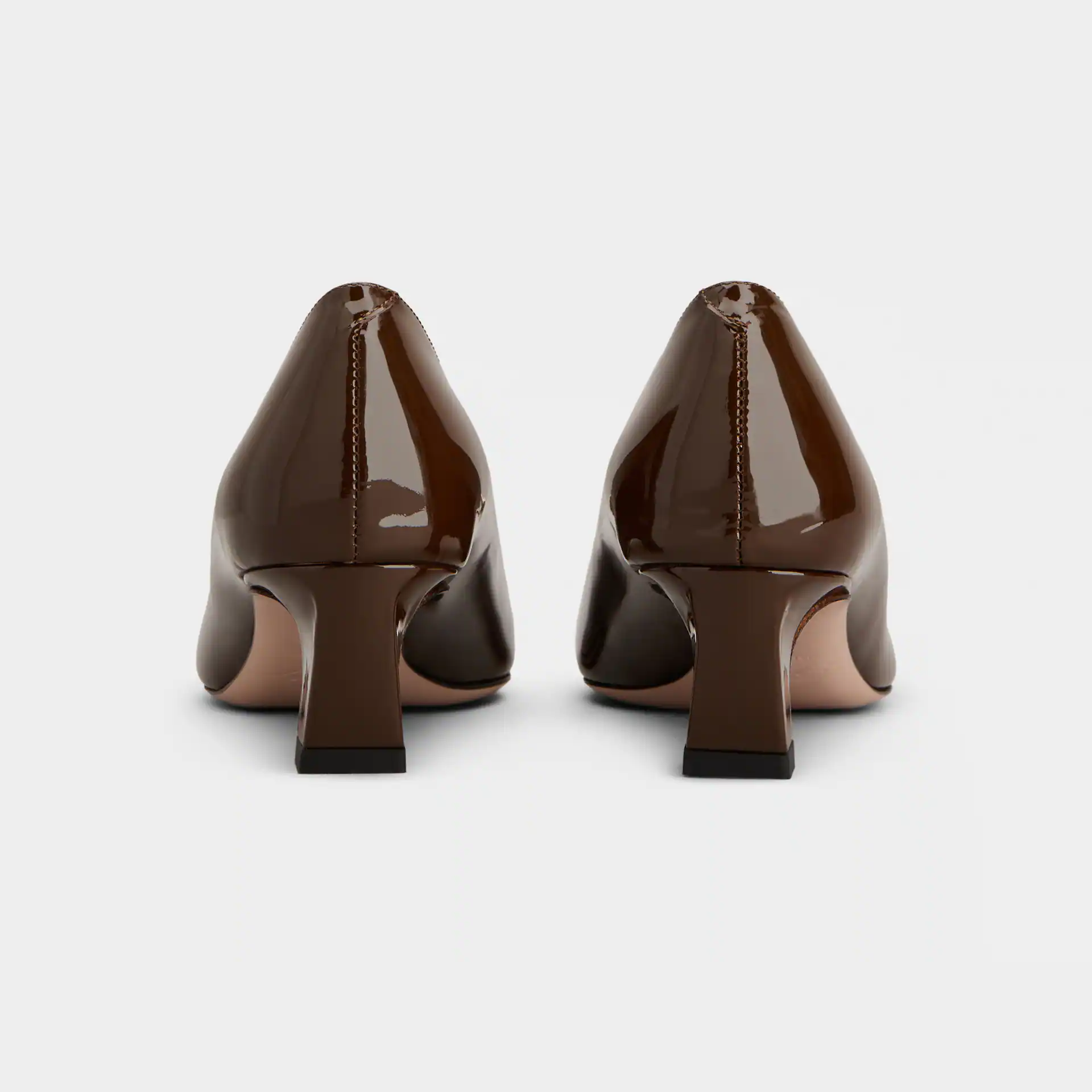 Roger Vivier Trompette Pumps High Heels In Brown Patent Leather With Metal Buckle (Heel Height 4.5cm)