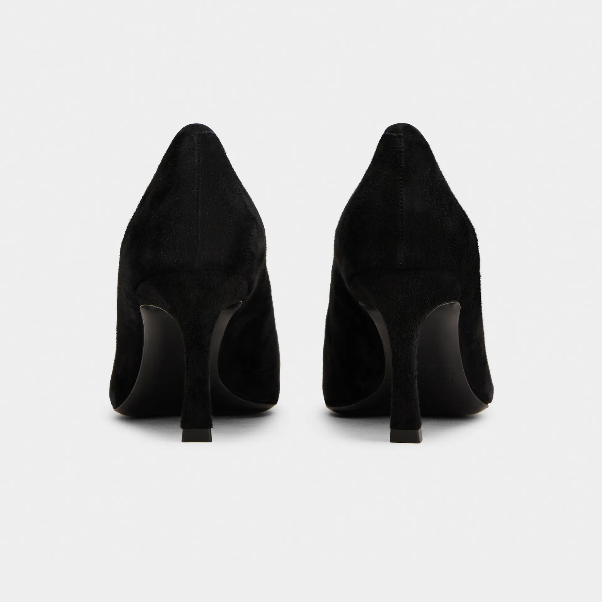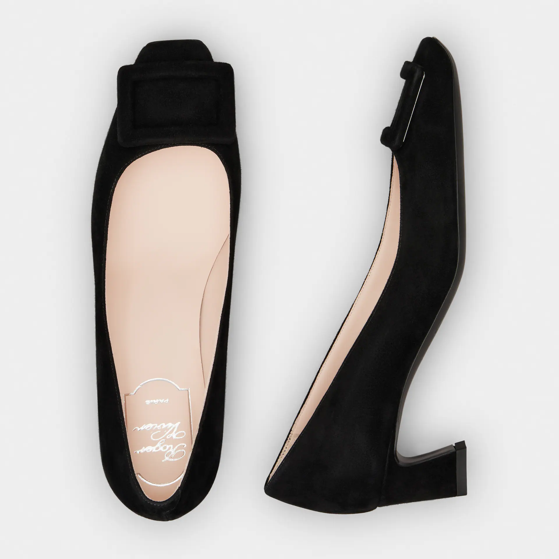 Roger Vivier Trompette Pumps High Heels In Black Suede With Suede Metal Buckle (Heel Height 4.5cm)