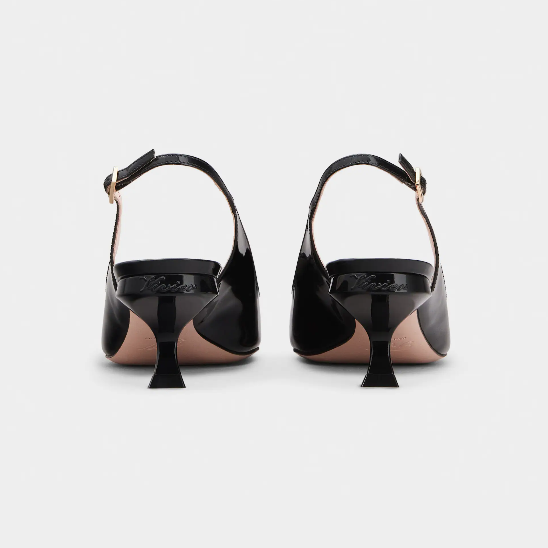 Roger Vivier Virgule Slingback Pumps High Heels In Black Patent Leather With Lacquered Metal Buckle (Heel Height 5.5cm)