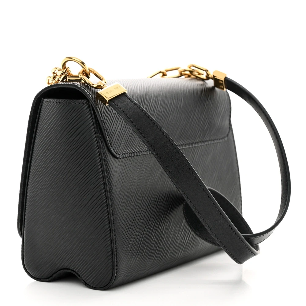 Louis Vuitton Twist MM Monogram Flower Chain Shoulder Bag Black Epi Leather Brass Hardware