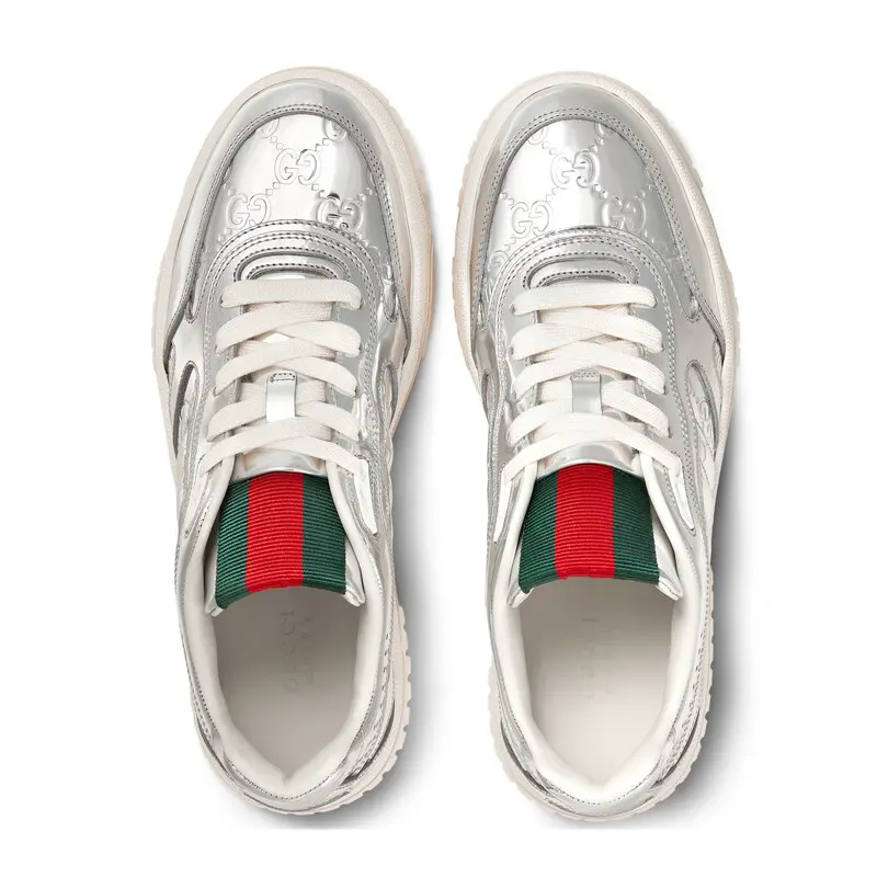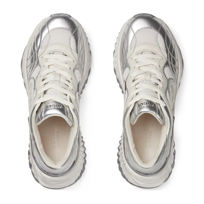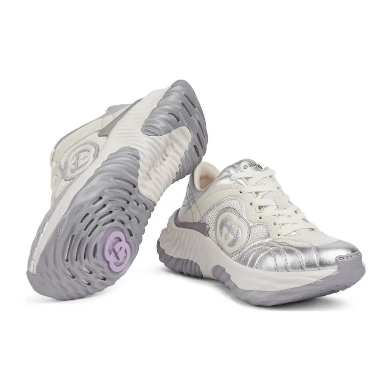 Gucci Ripple series women's thick soled sports shoes white silver Sneakers