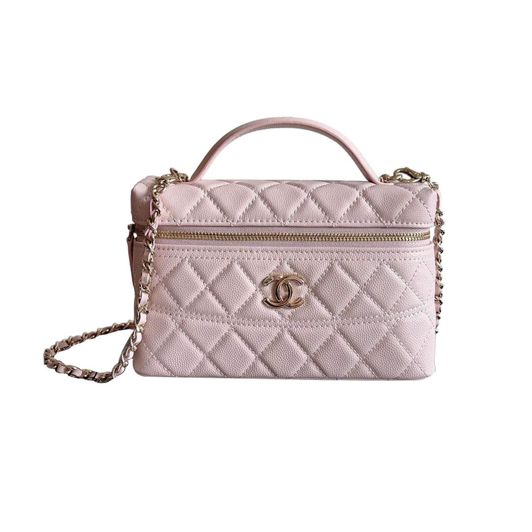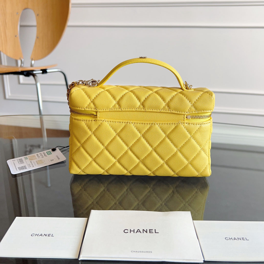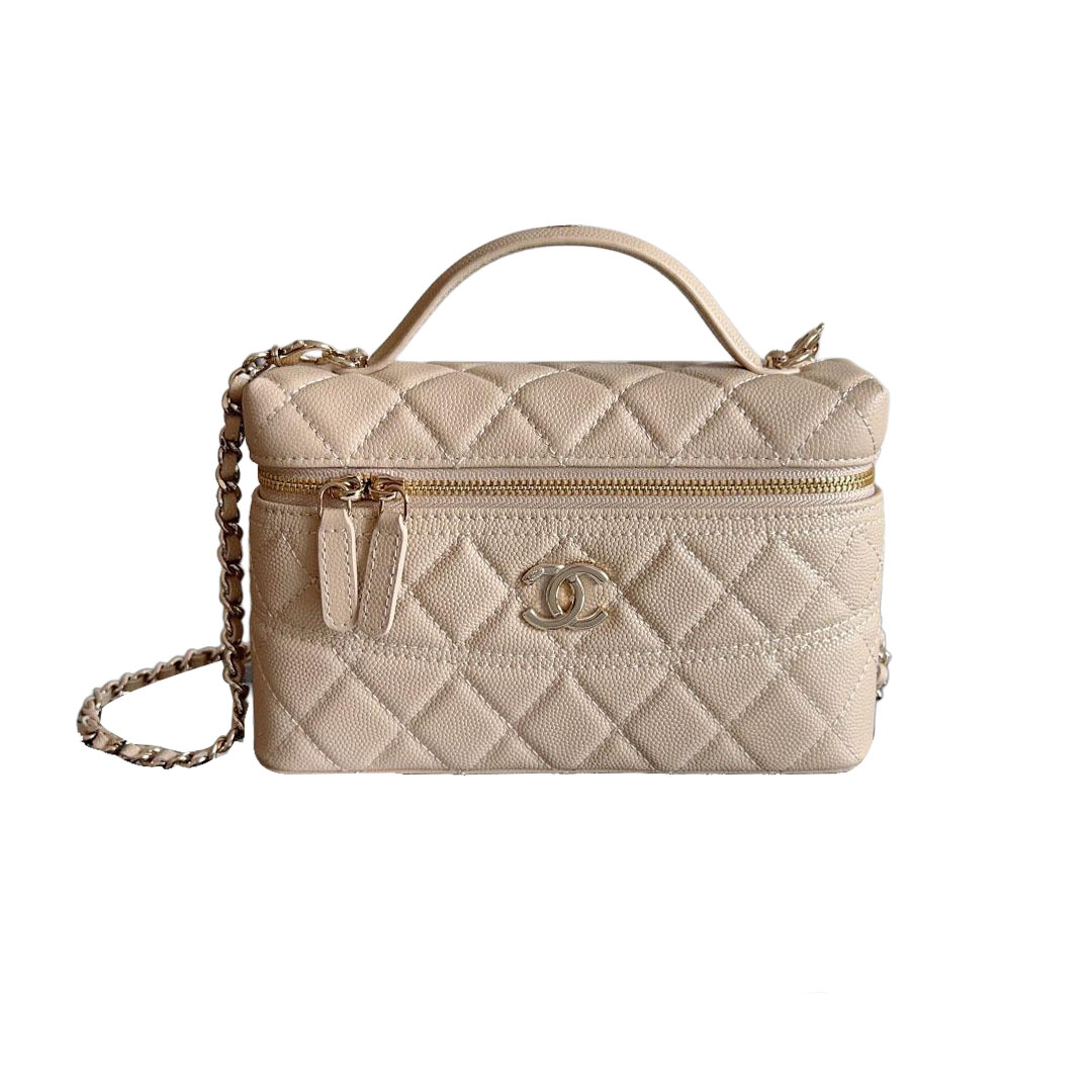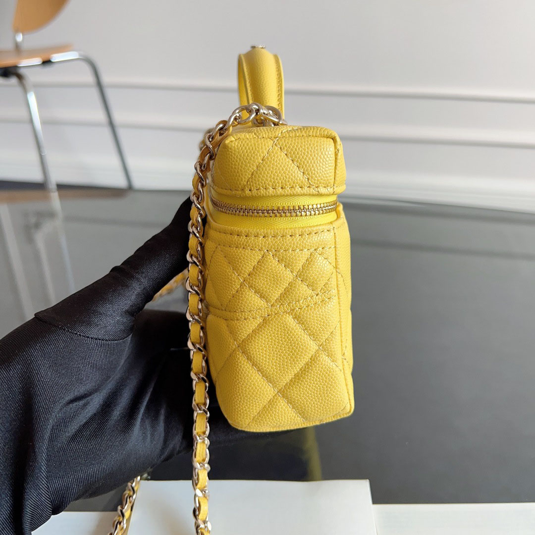 Chanel Yellow / Pink / white / Grey / Black / Apricot color Lychee print calfskin handle makeup bag handbag