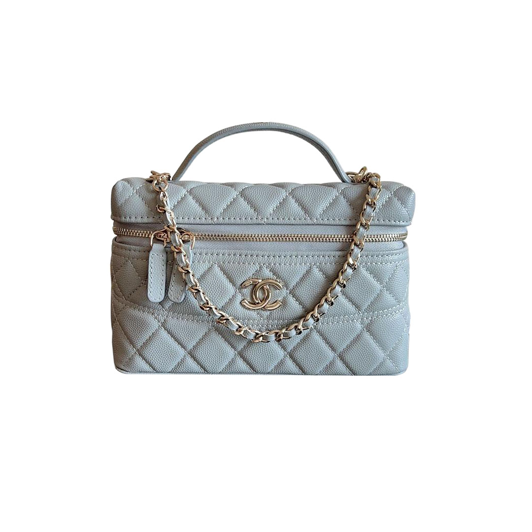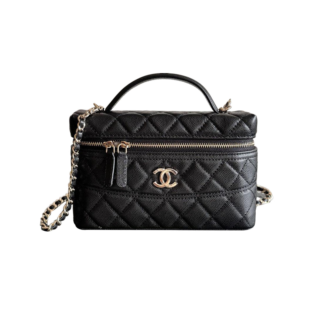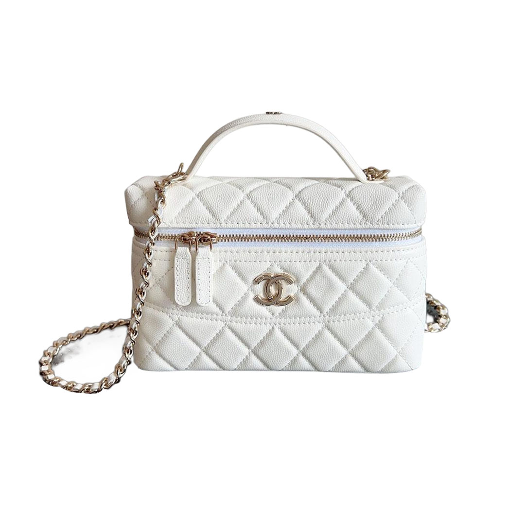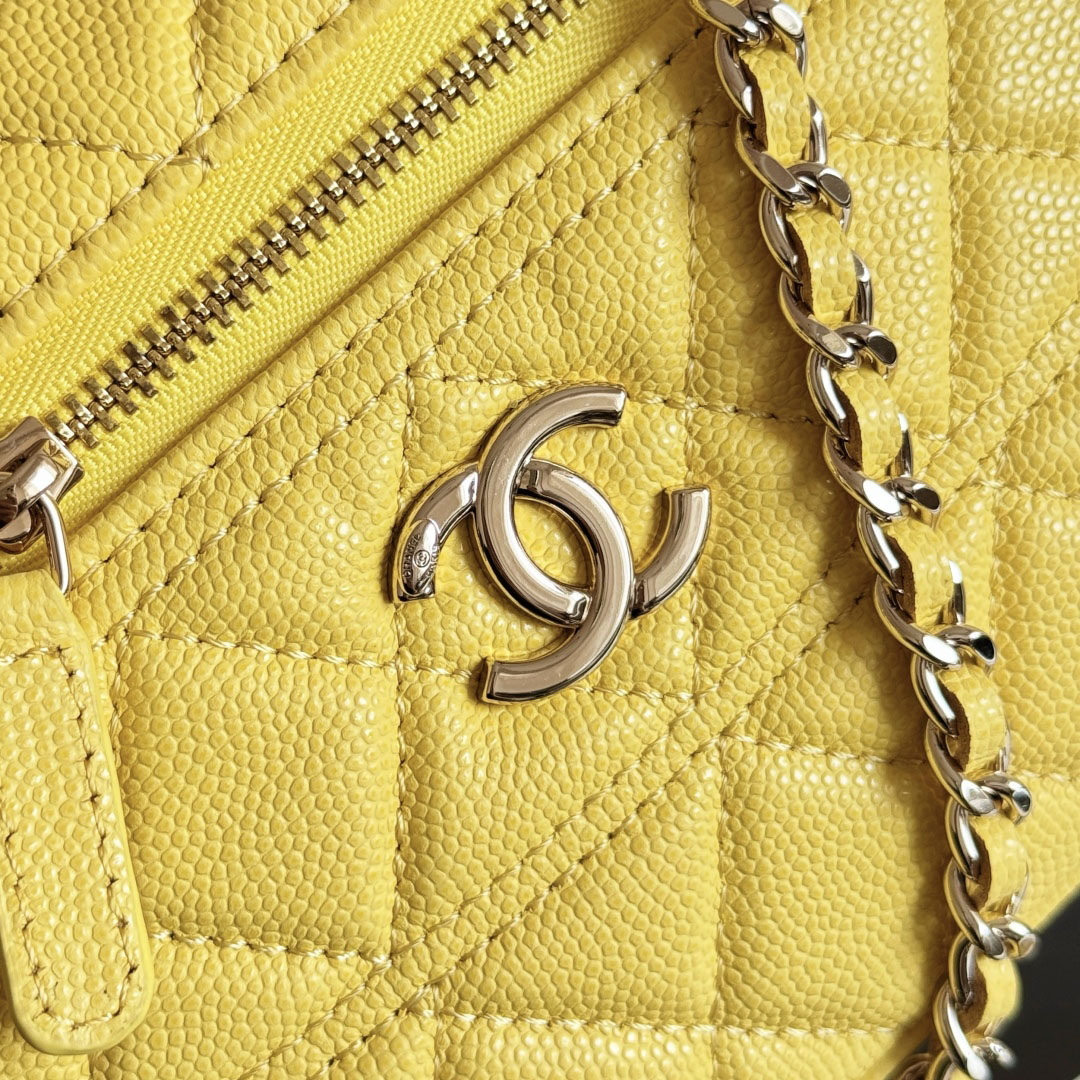 Chanel Yellow / Pink / white / Grey / Black / Apricot color Lychee print calfskin handle makeup bag handbag