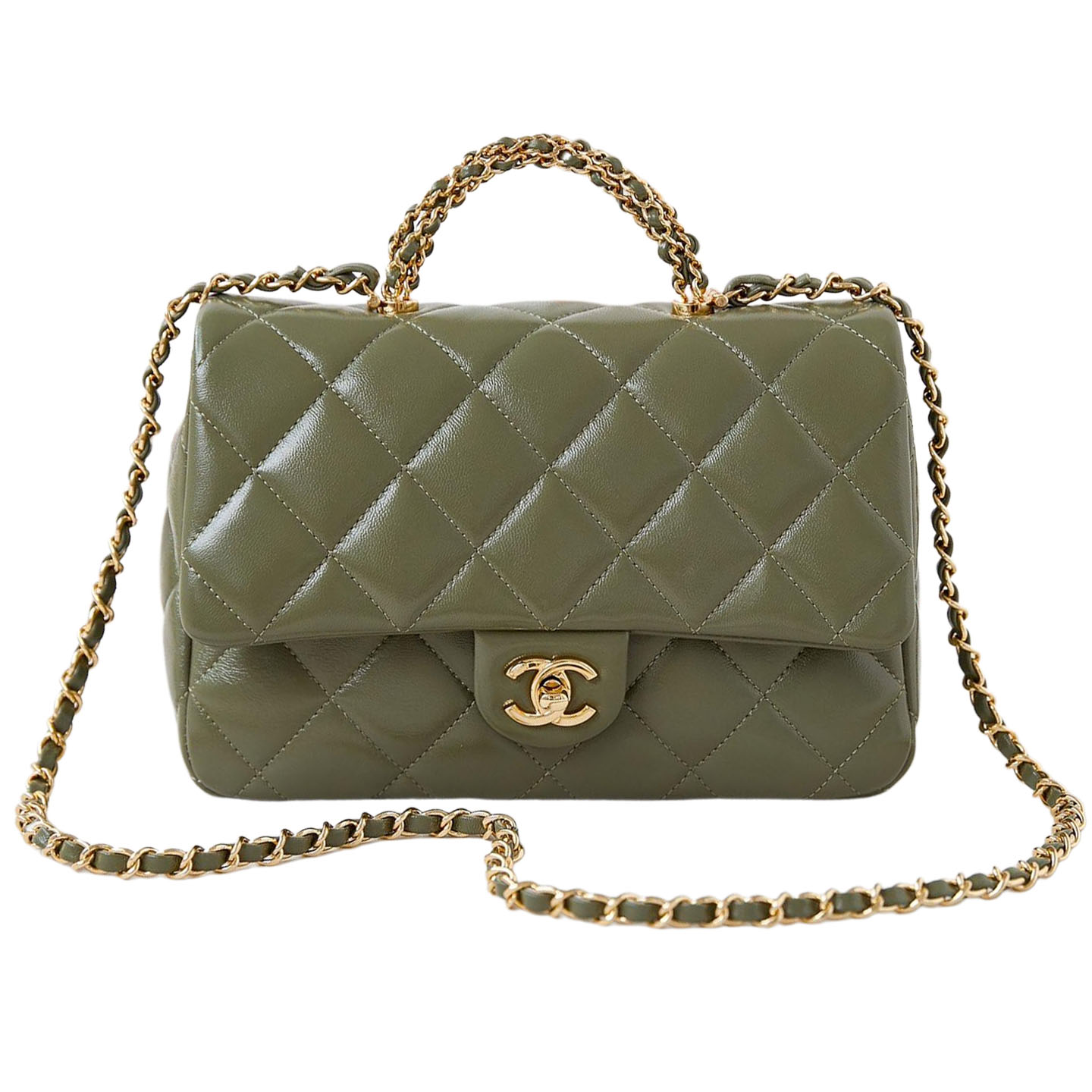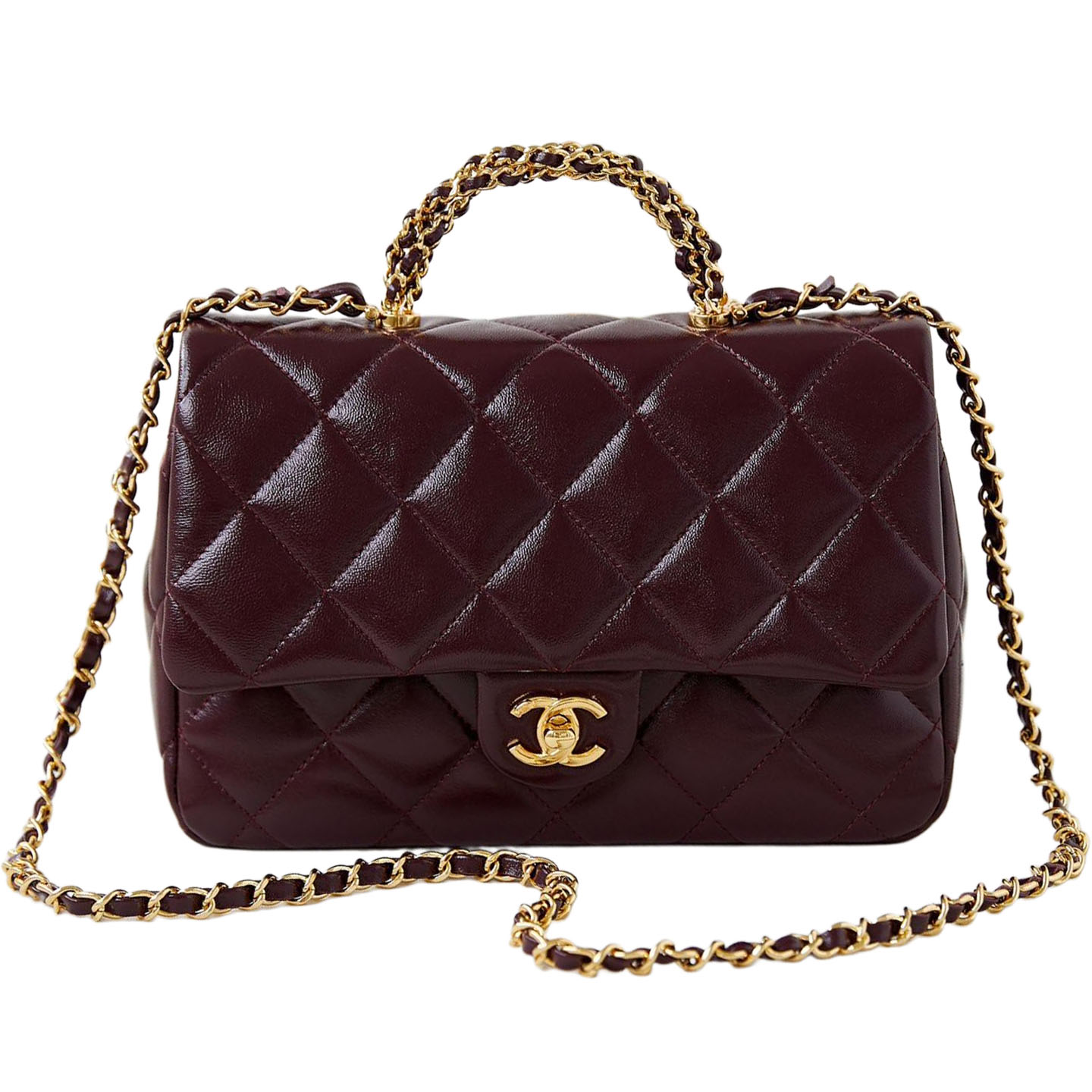 Chanel Gold handle handbag wine red/black/White/milk tea color/avocado green crossbody bag