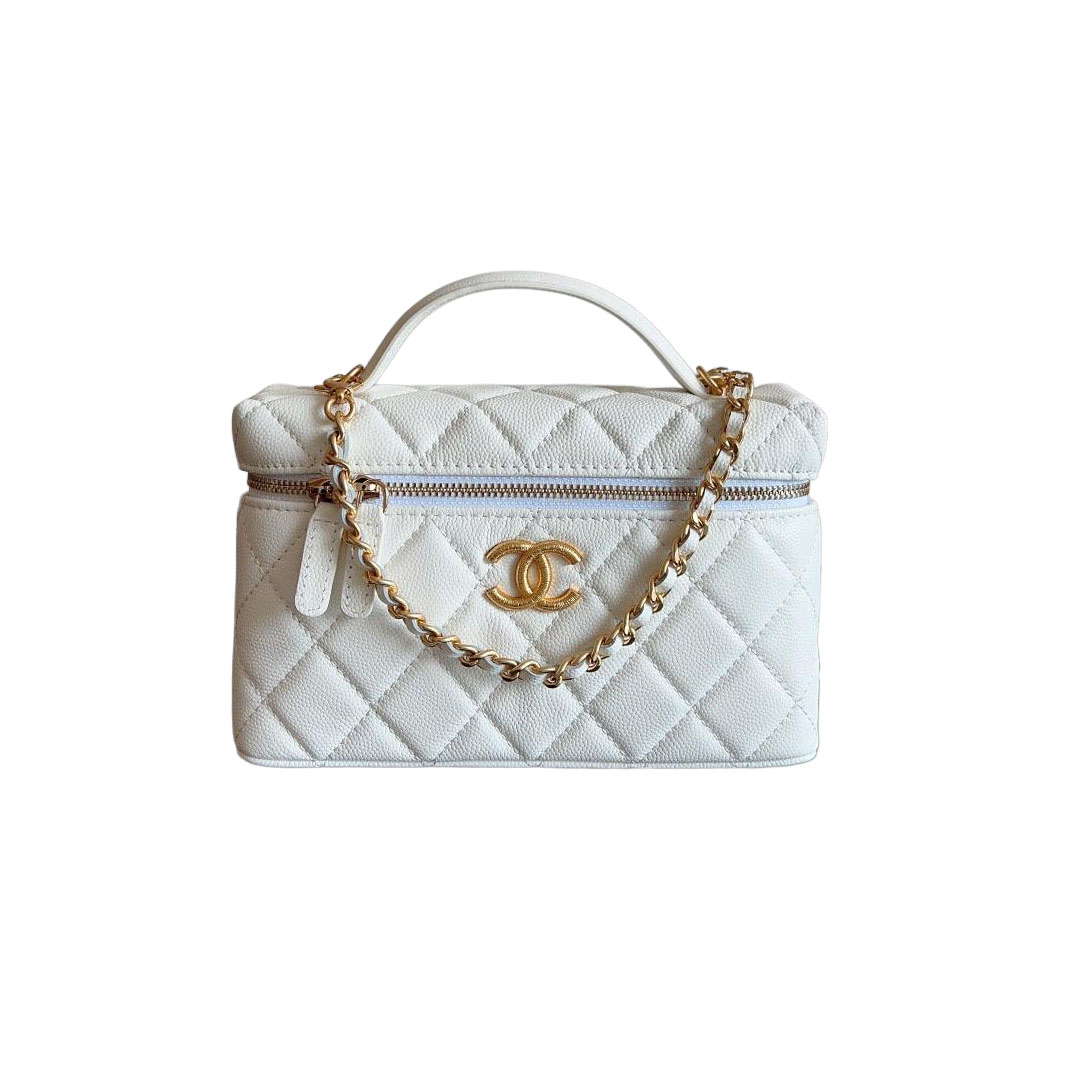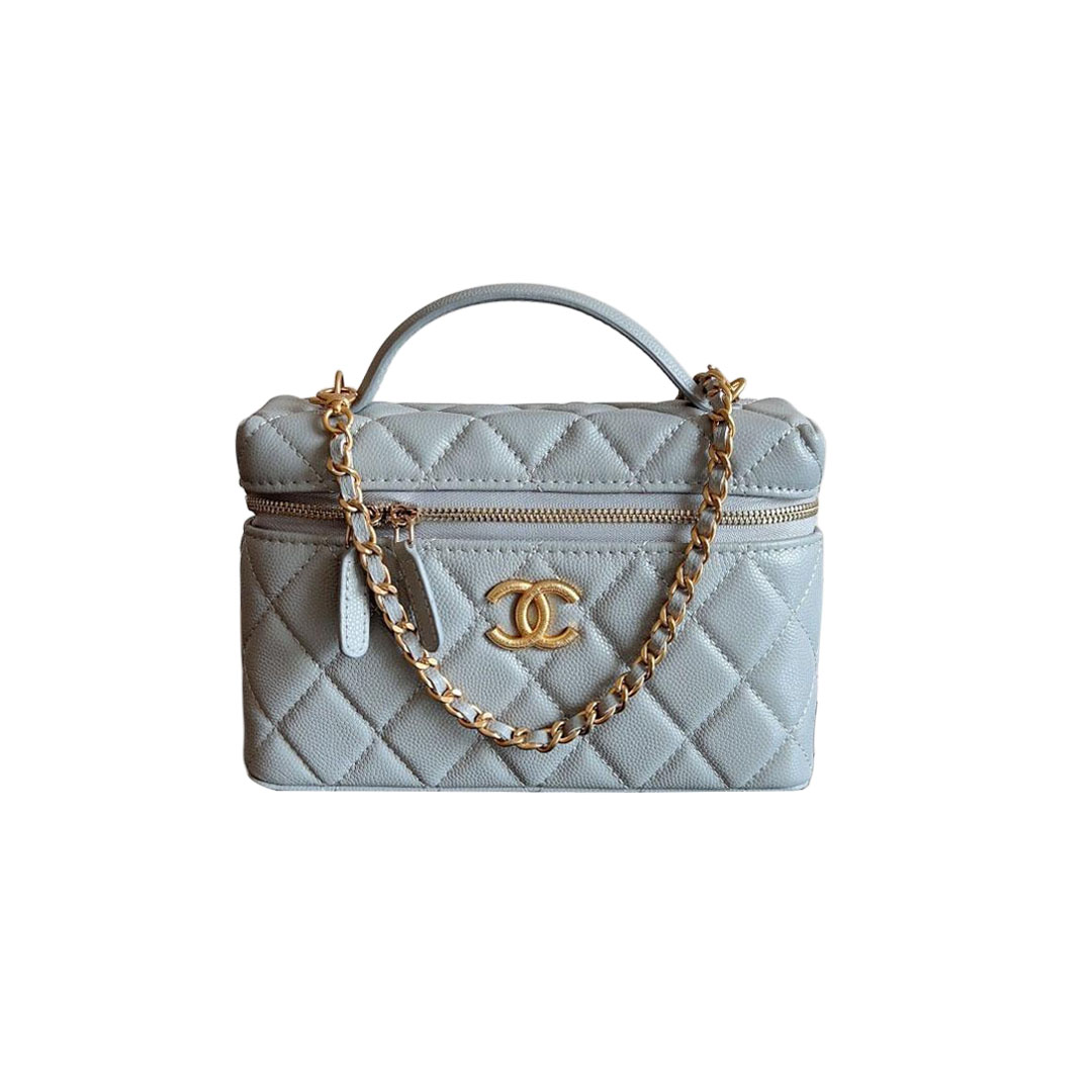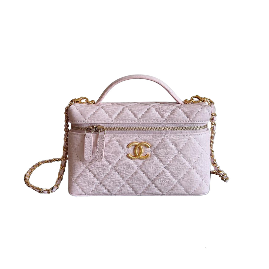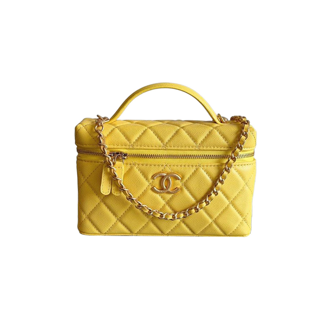 Chanel Apricot color / Yellow / Pink / white / Grey / Black Quilted Caviar Leather handle makeup bag handbag