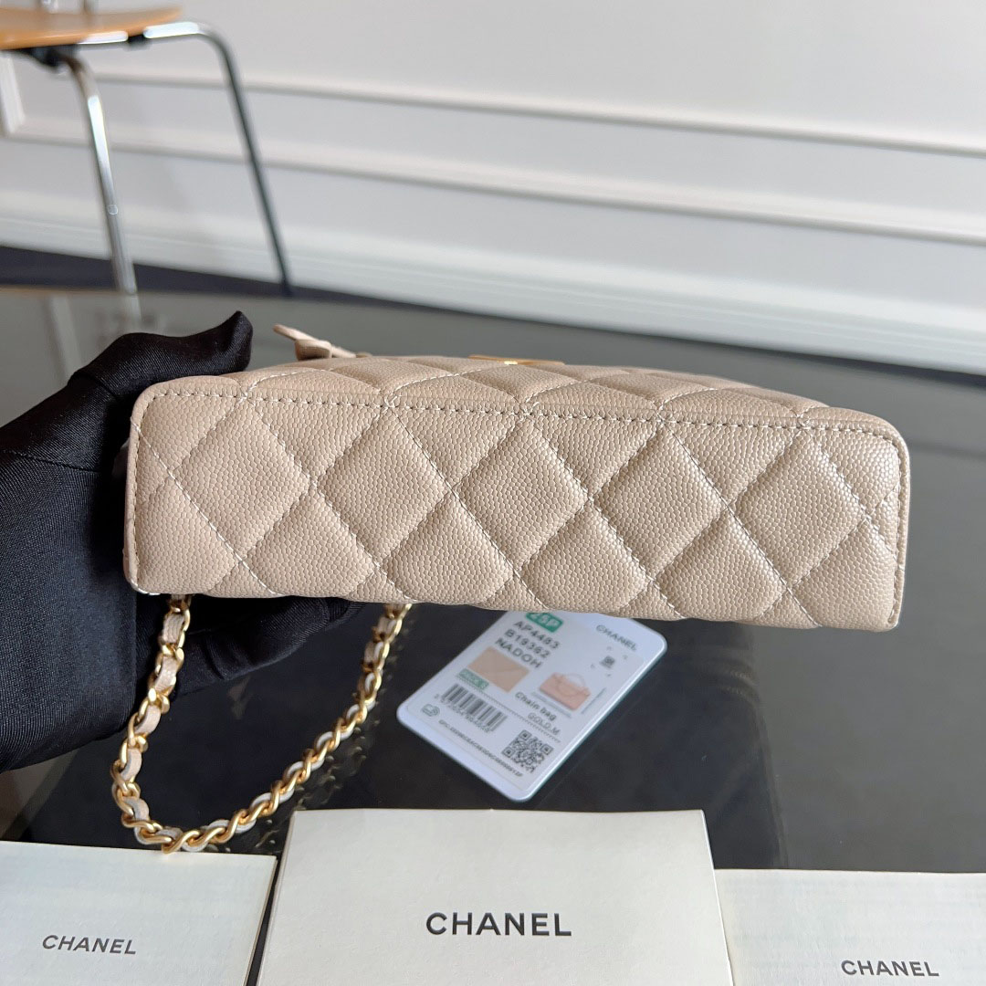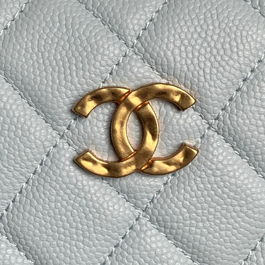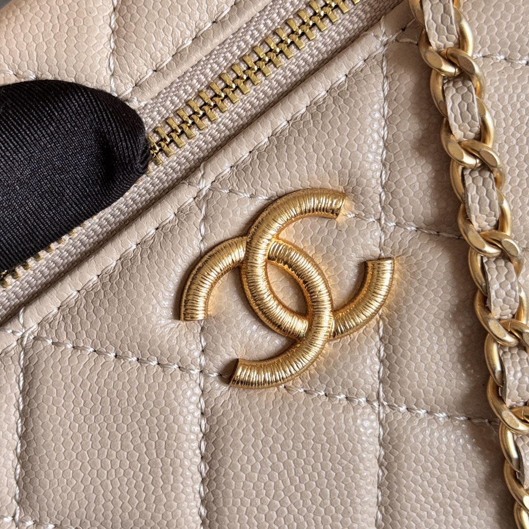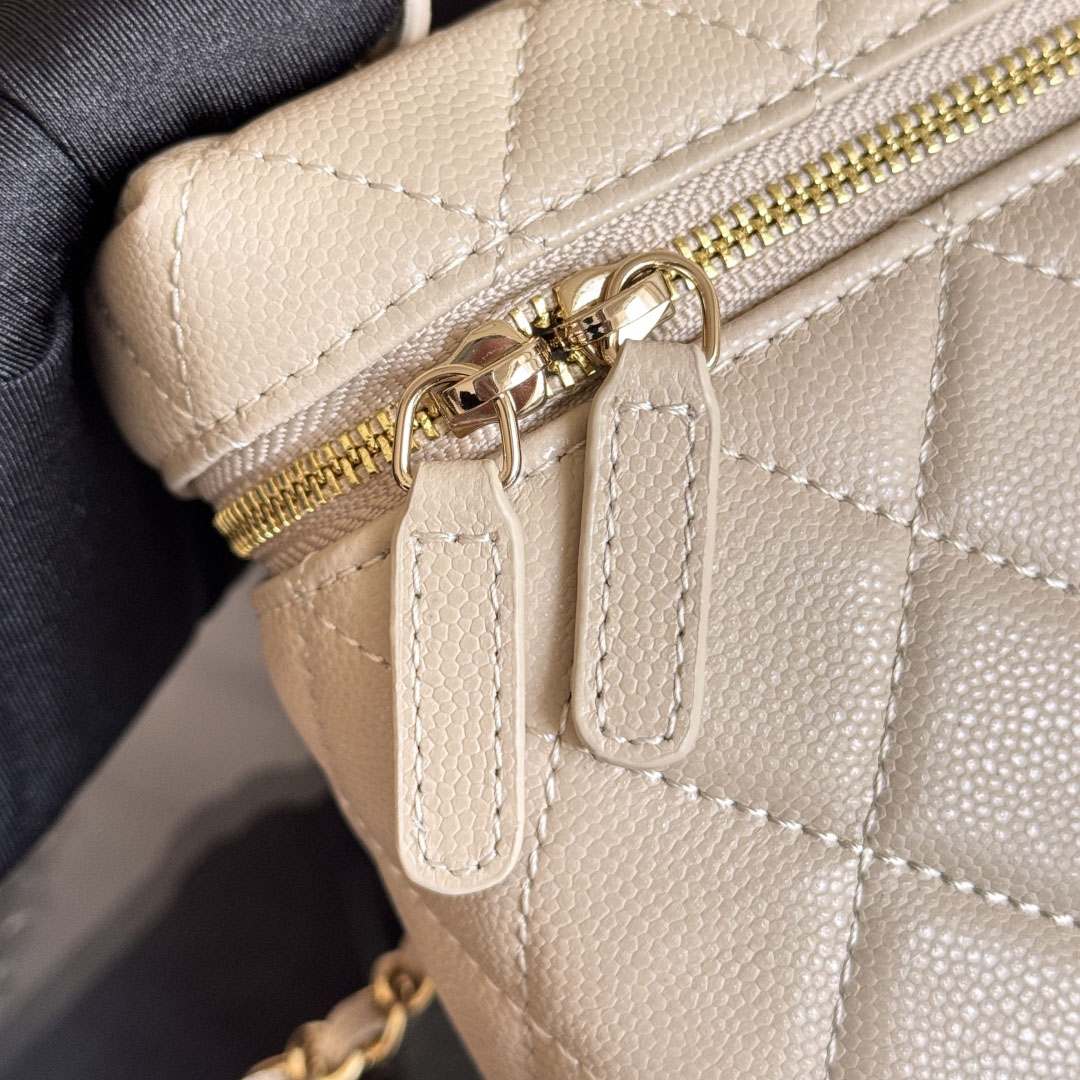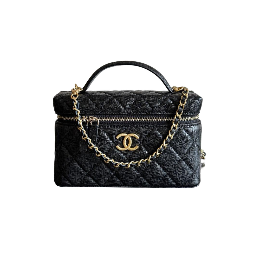 Chanel Apricot color / Yellow / Pink / white / Grey / Black Quilted Caviar Leather handle makeup bag handbag