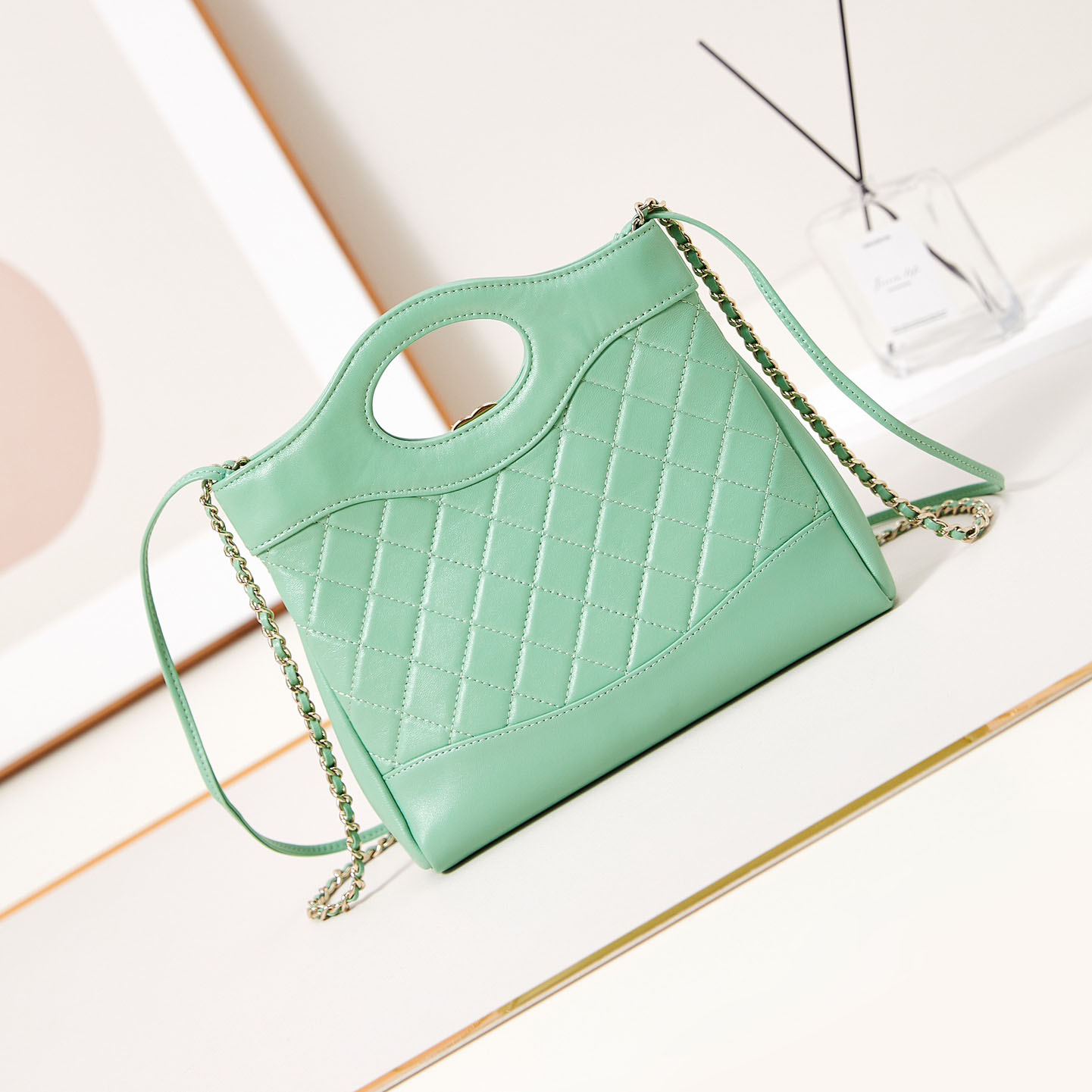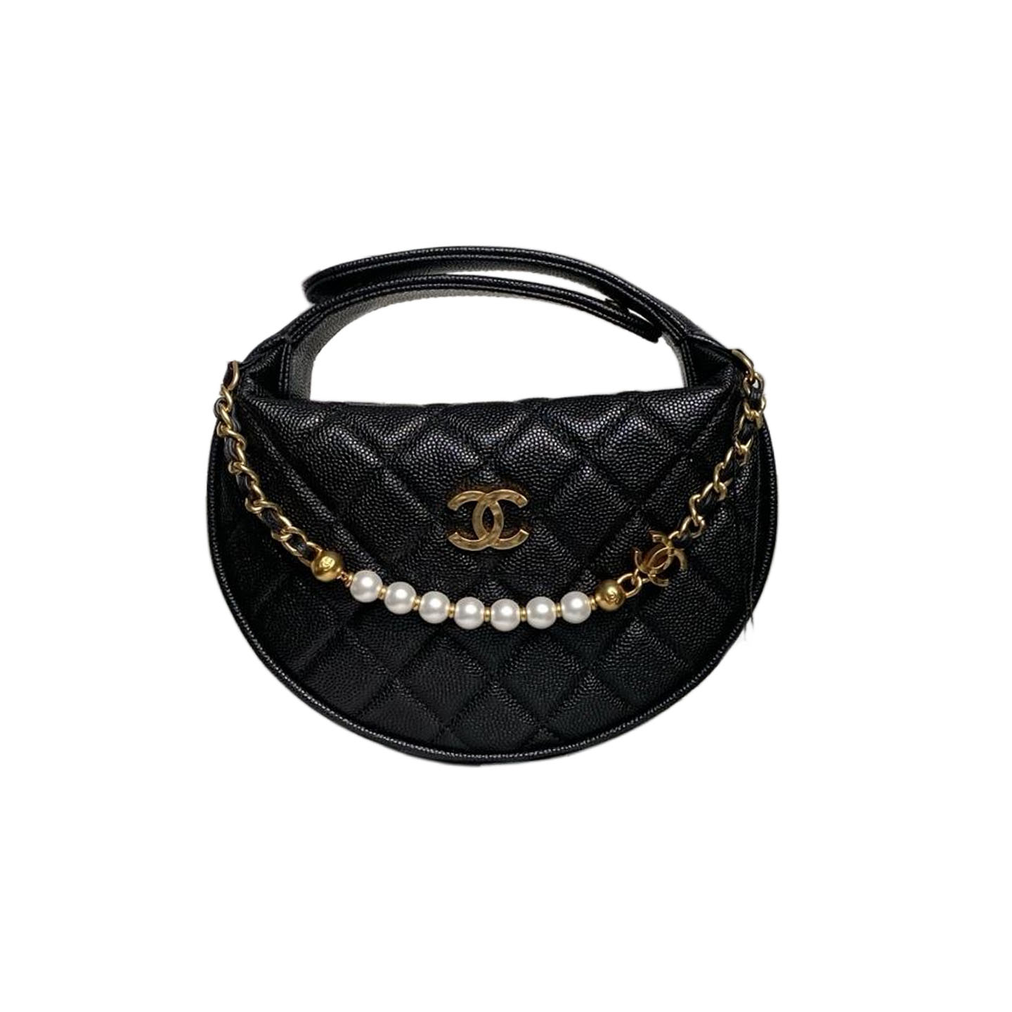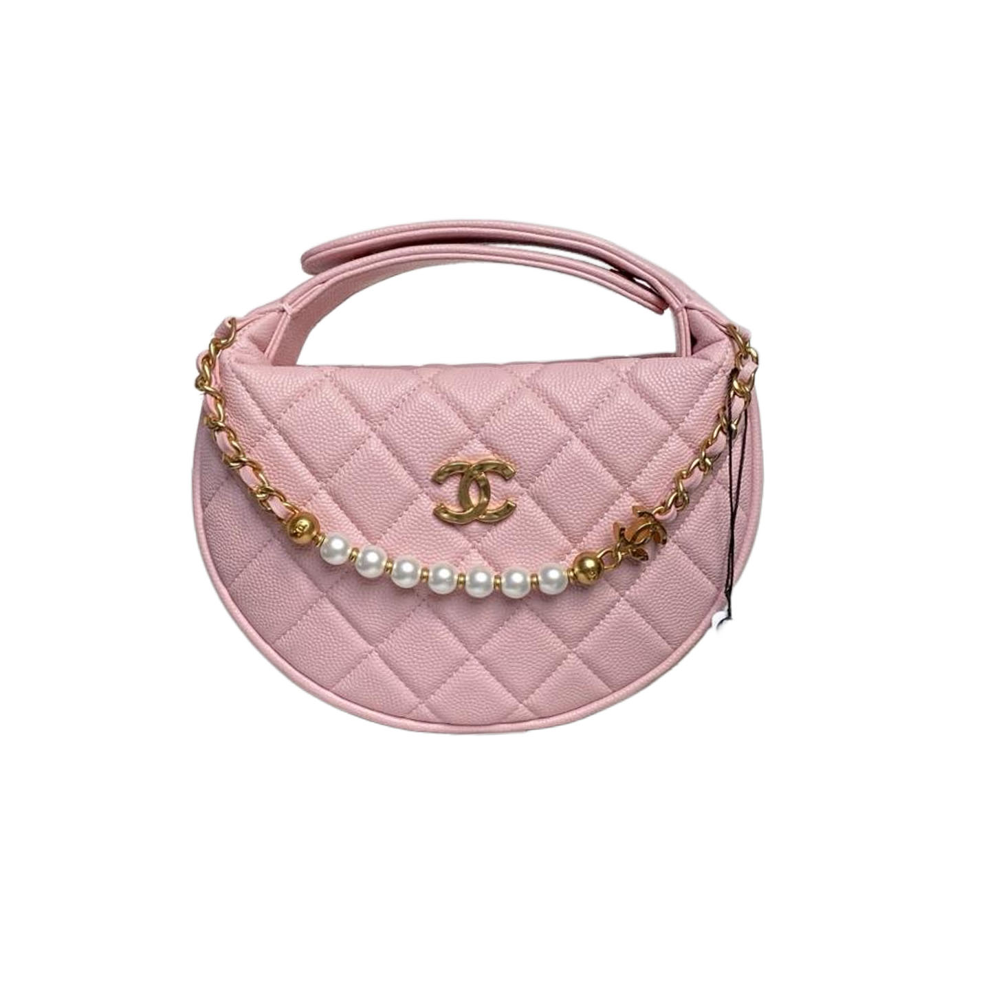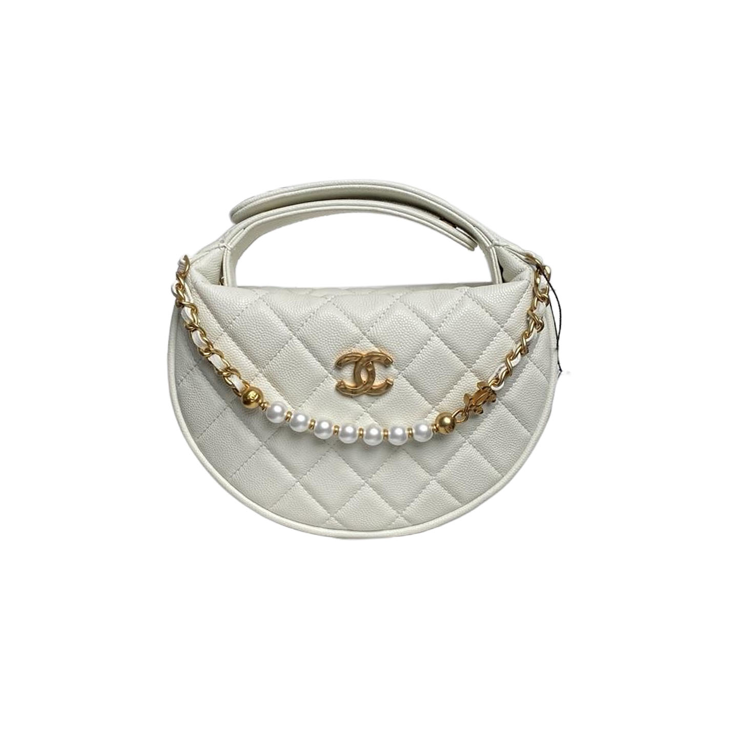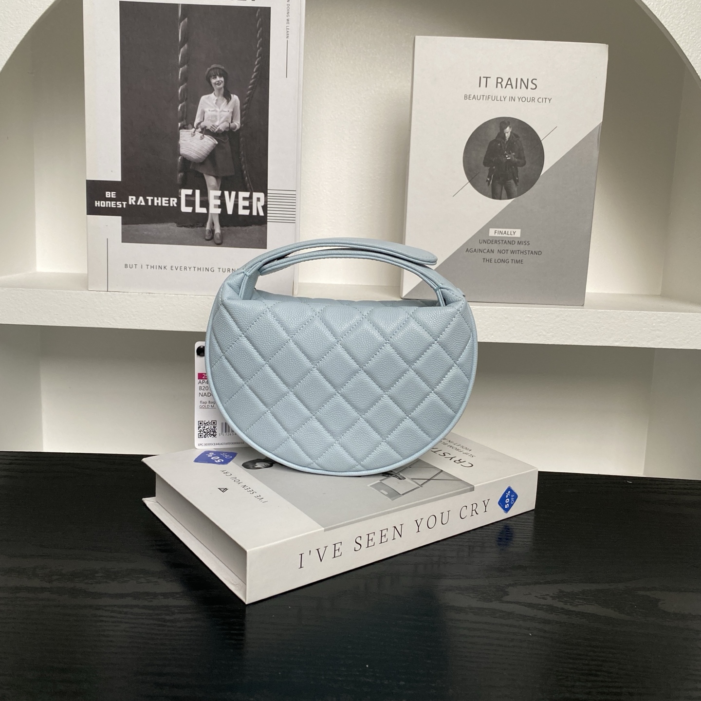 Chanel Pearl Handle hula hoop handbag Blue/purple/pink/white/black granular cowhide crossbody bag