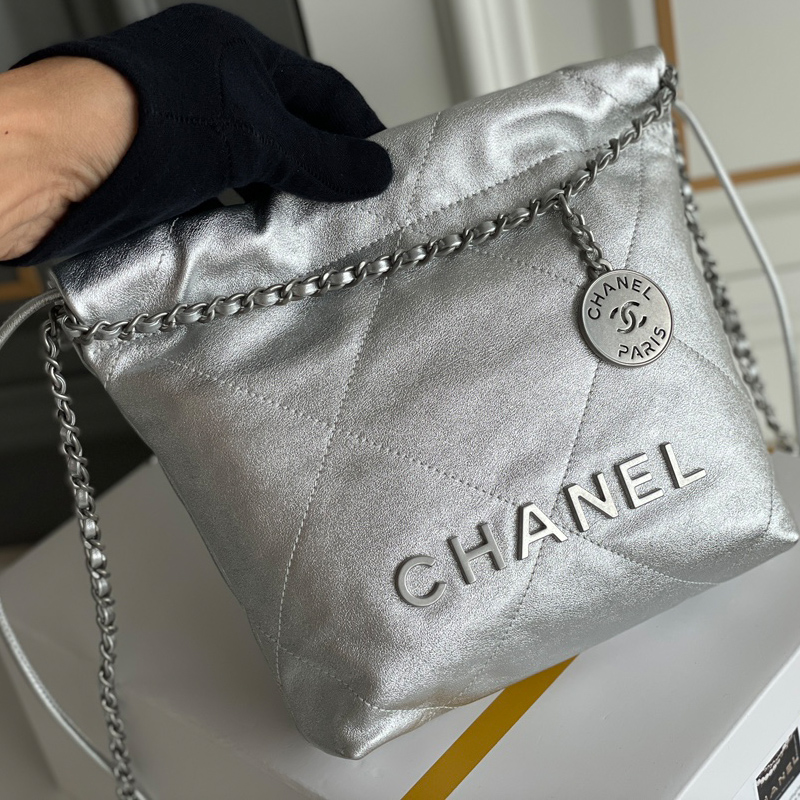 Chanel 22bags Silver Woven Cowhide Shoulder Bags