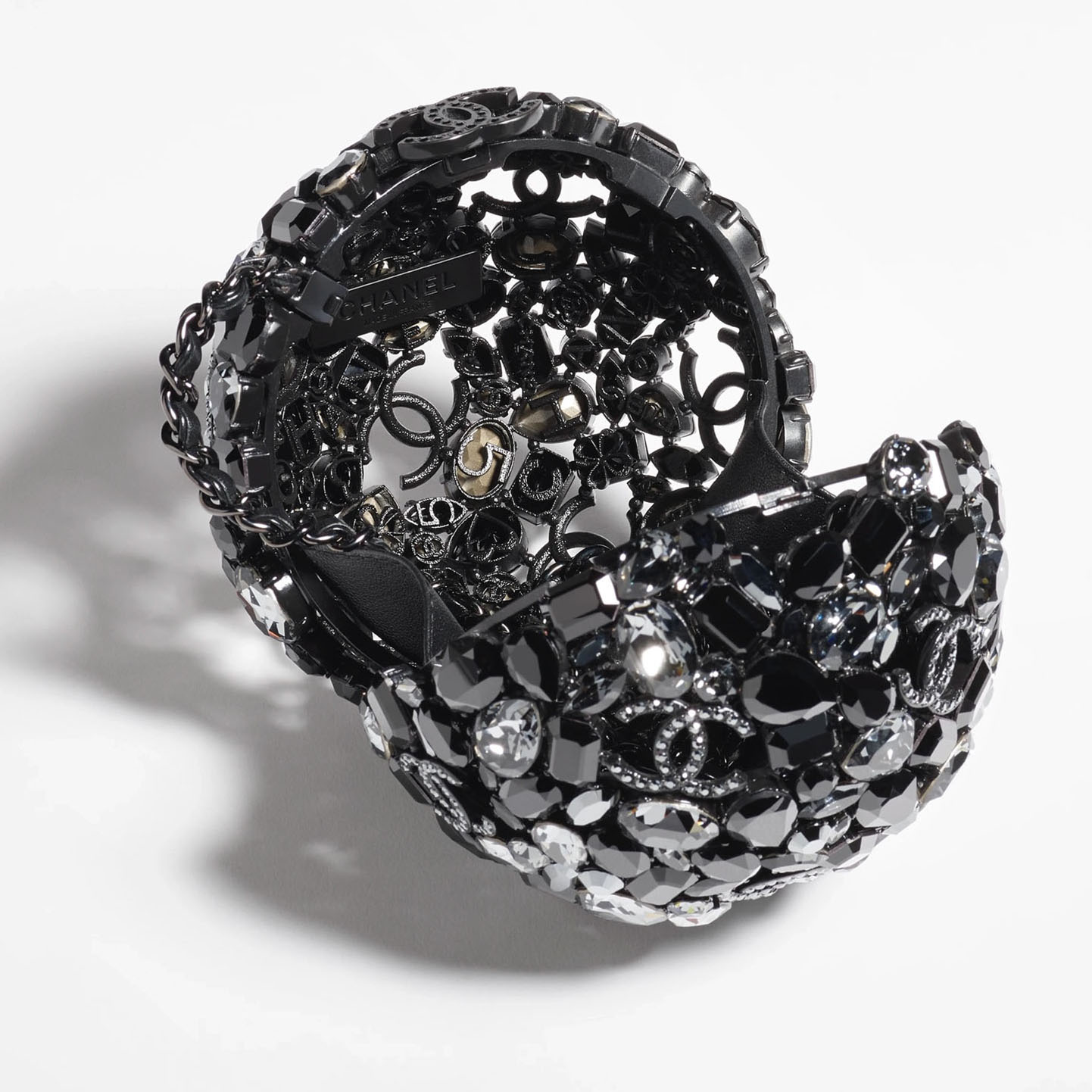 Chanel Silver / gold / black crystal ball dinner bag crossbody bag