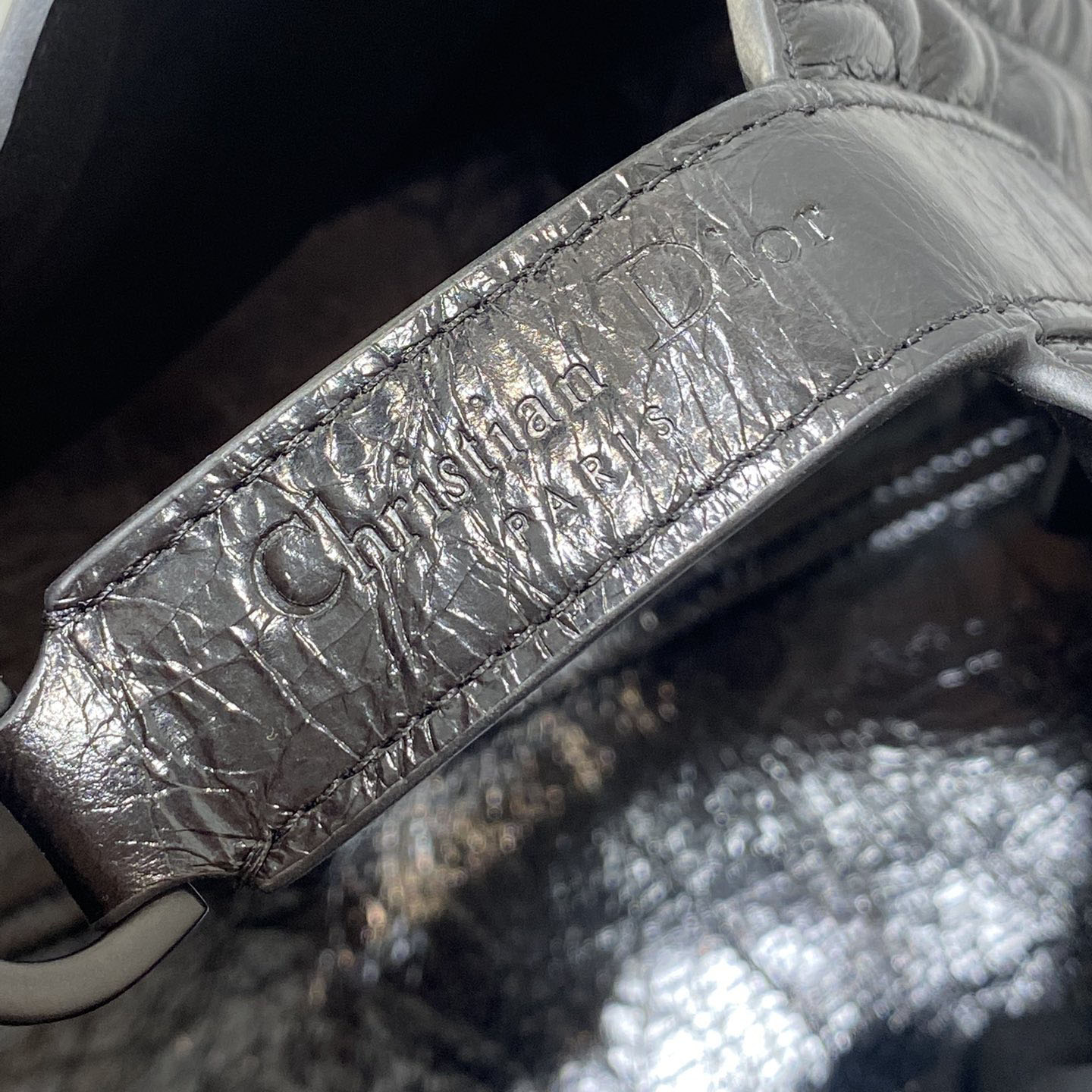 Dior Medium Dior Toujours Bag In Black Macrocannage Crinkled Calfskin With Black Hardware