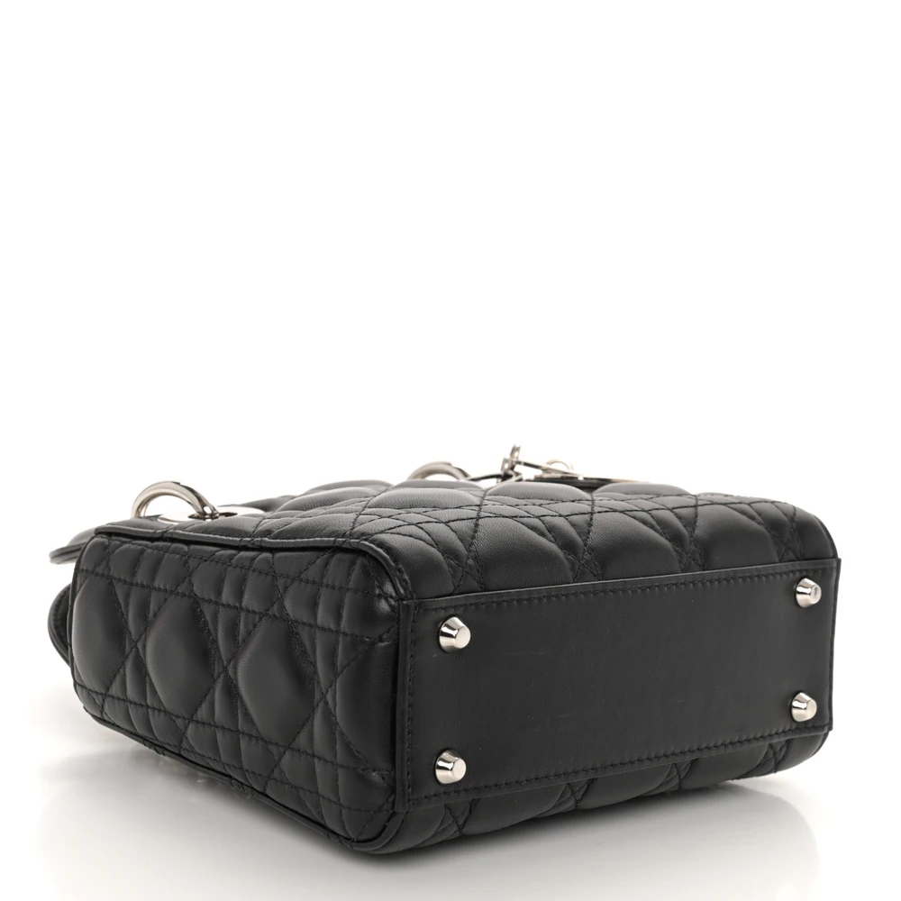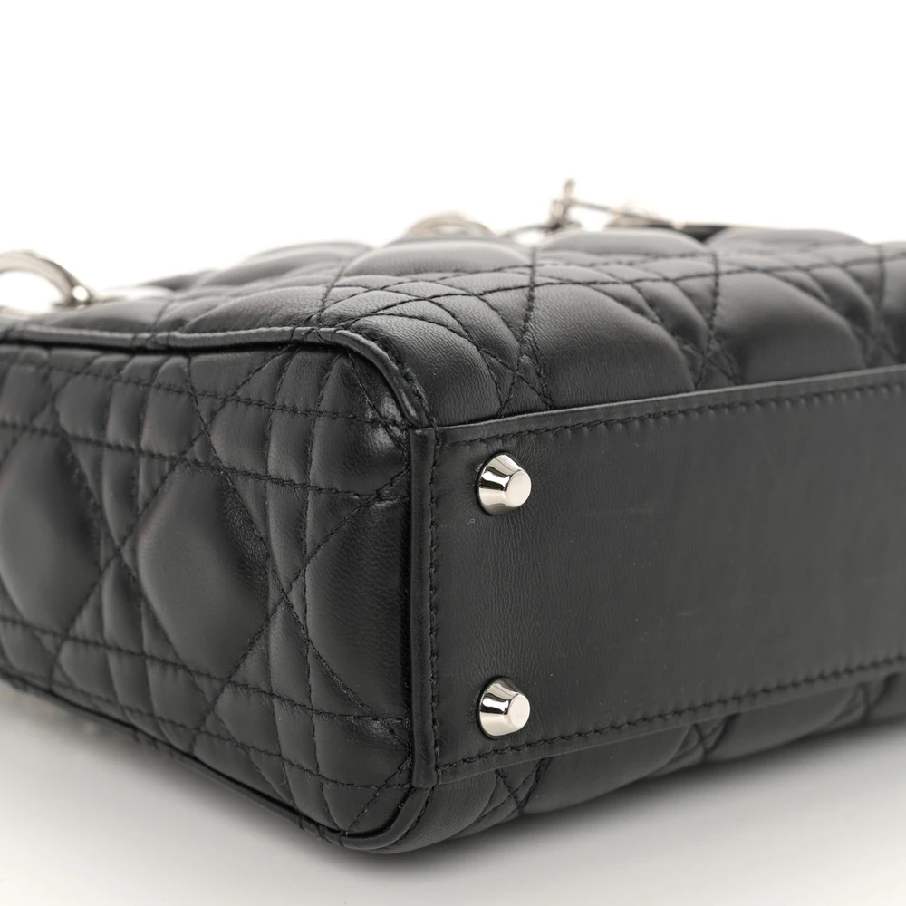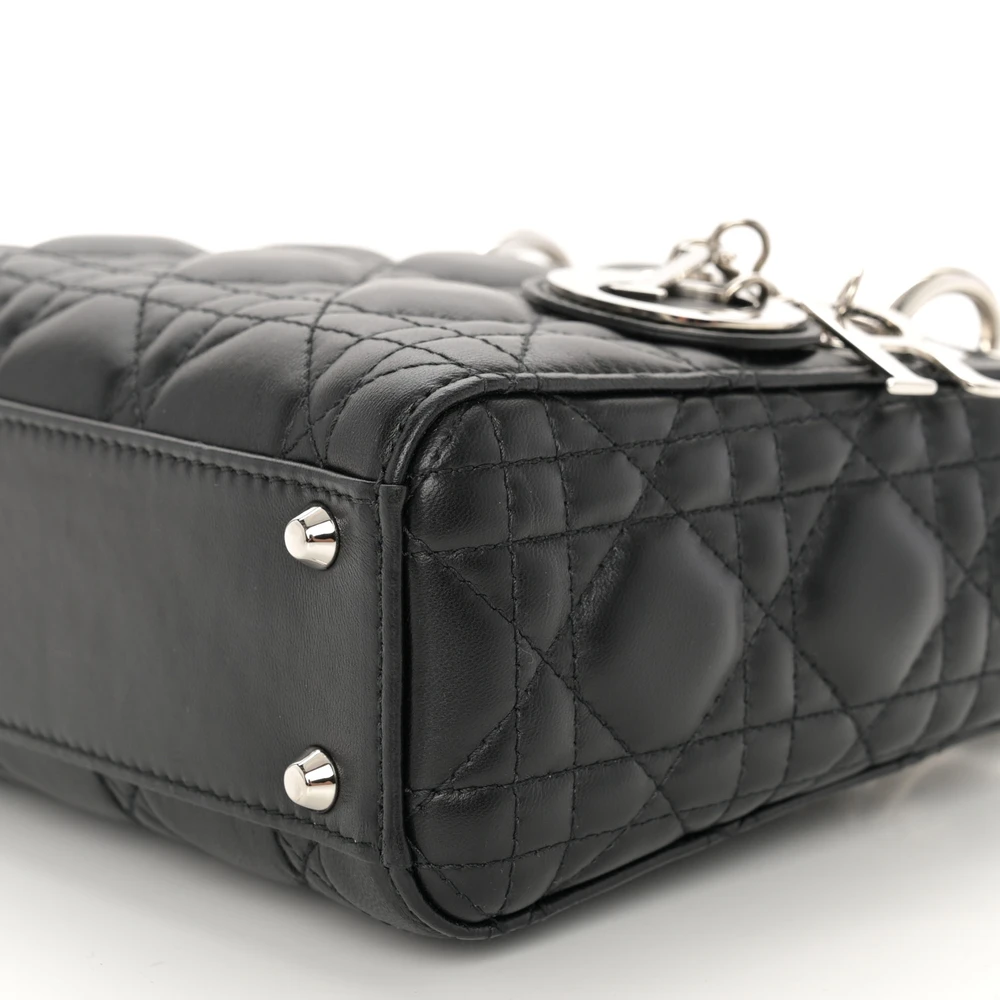 Dior Mini Lady Dior Black Cannage Lambskin Leather Silver Hardware