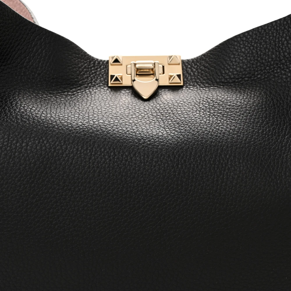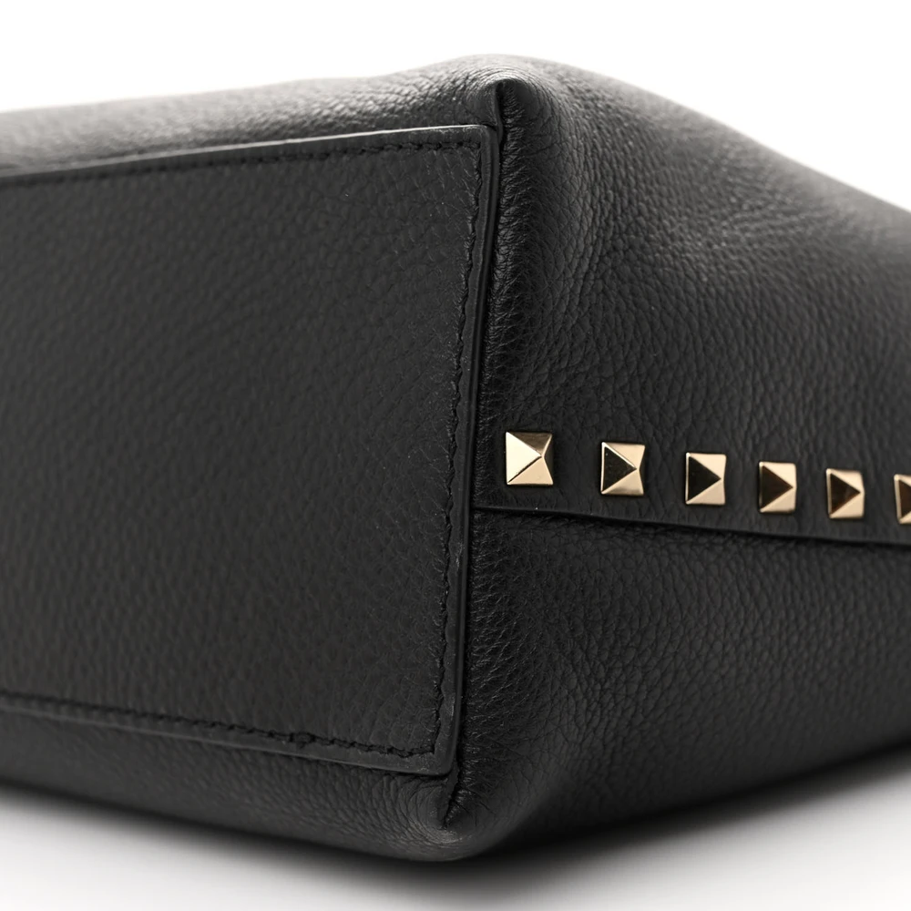 Valentino Garavani Medium Rockstud Tote Black Pebbled Calfskin Leather Gold Hardware