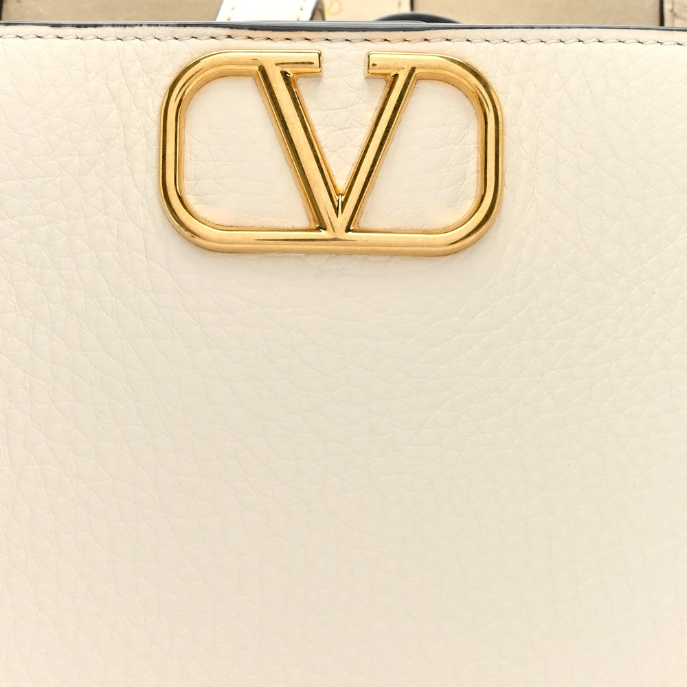 Valentino Garavani Small Alltime Handbag Ivory Soft Grainy Calfskin Leather Gold Hardware