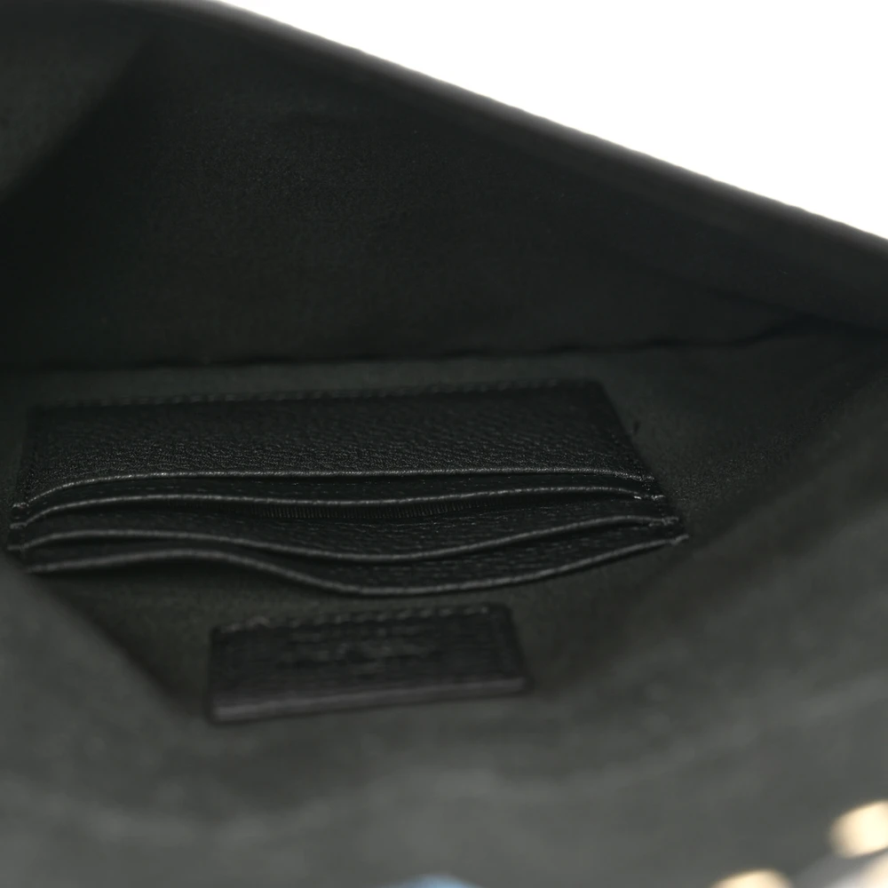 Valentino Garavani Medium Rockstud Envelope Flat Wristlet Pouch Black Pebbled Calfskin Leather Light Gold Hardware