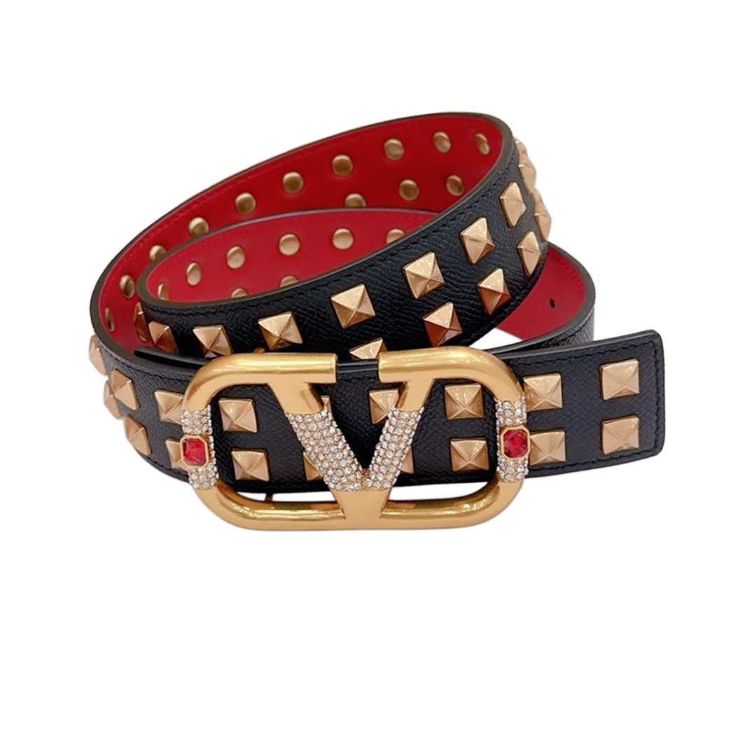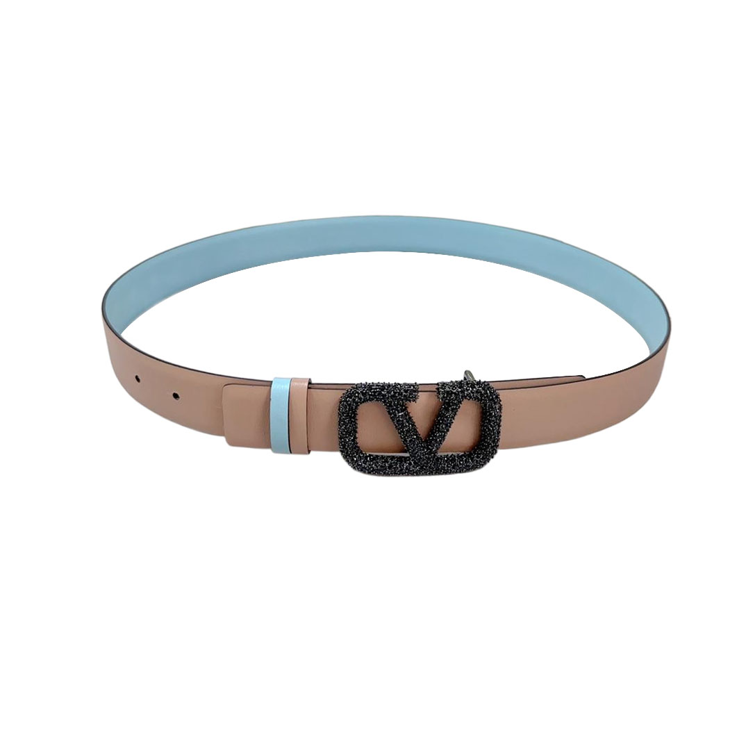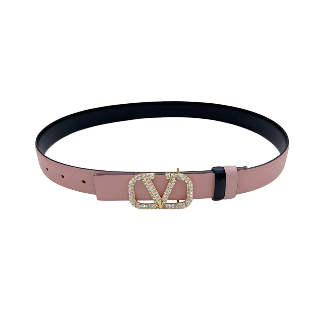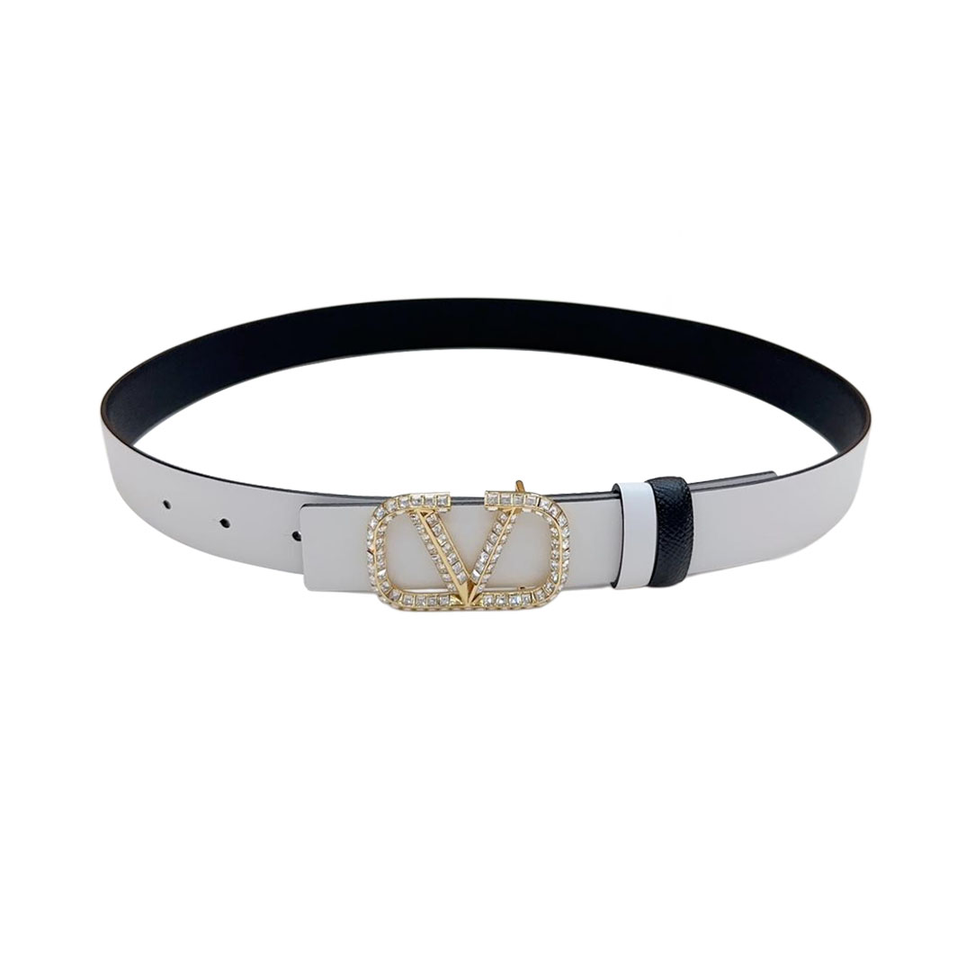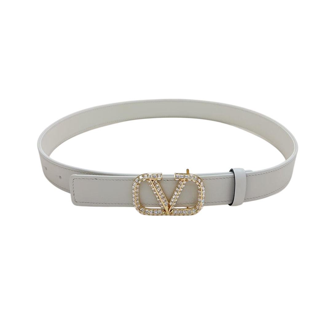 Valentino V Buckle With Crystal Belt In Black/Blue/Pink/Brown/White Calfskin With Gold Hardware 30mm