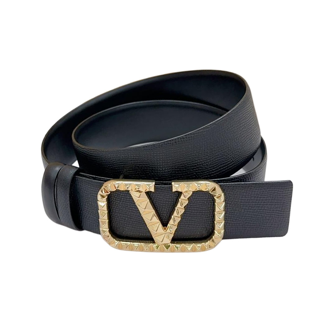 Valentino V Buckle Belt In Brown/Black/White/Nude/Red Calfskin With Brown/Black/White/Nude/Red Hardware 30mm