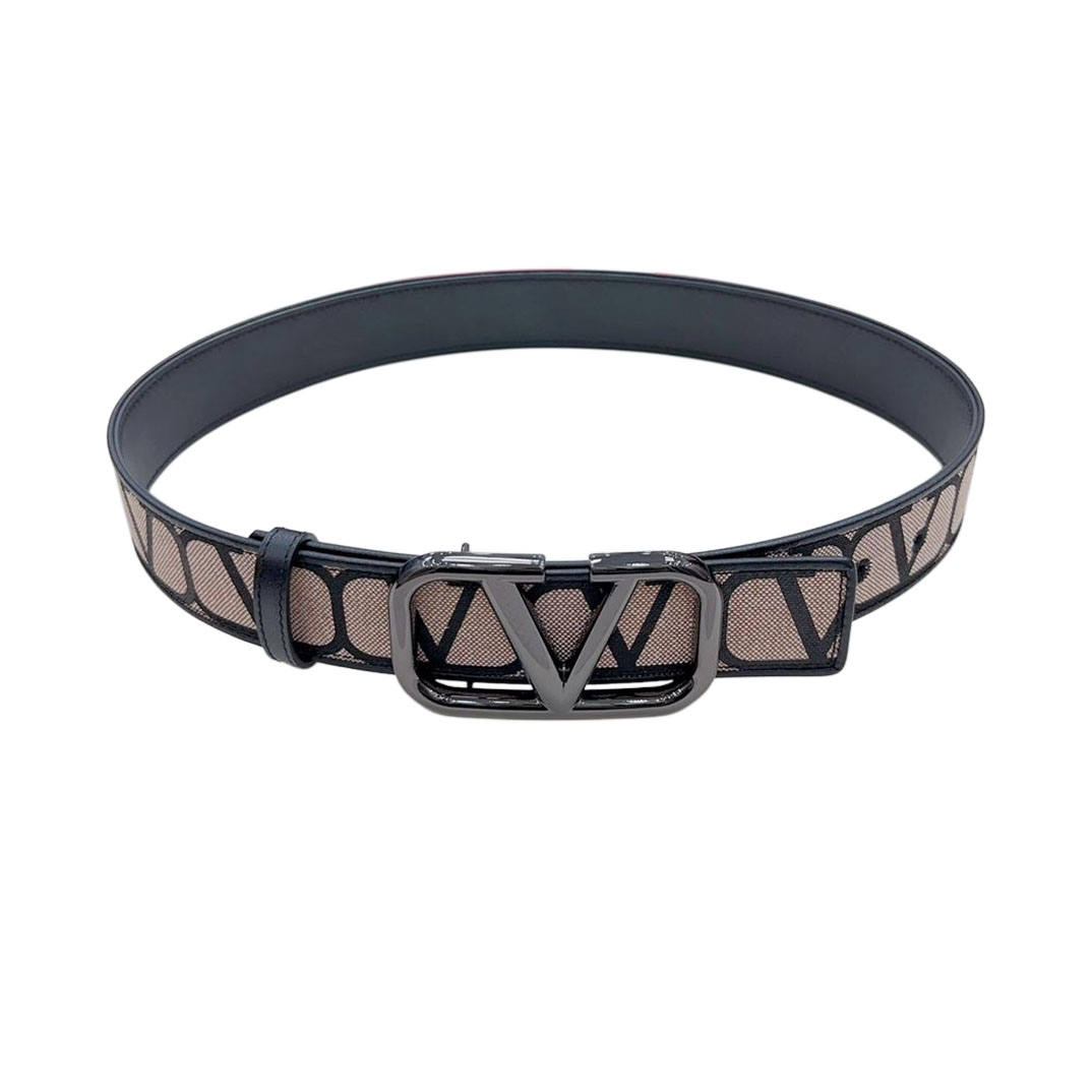 Valentino V Buckle Belt In Red/Black/Coffee Monogram Logo Calfskin With Gold/Gun Black Hardware 40mm