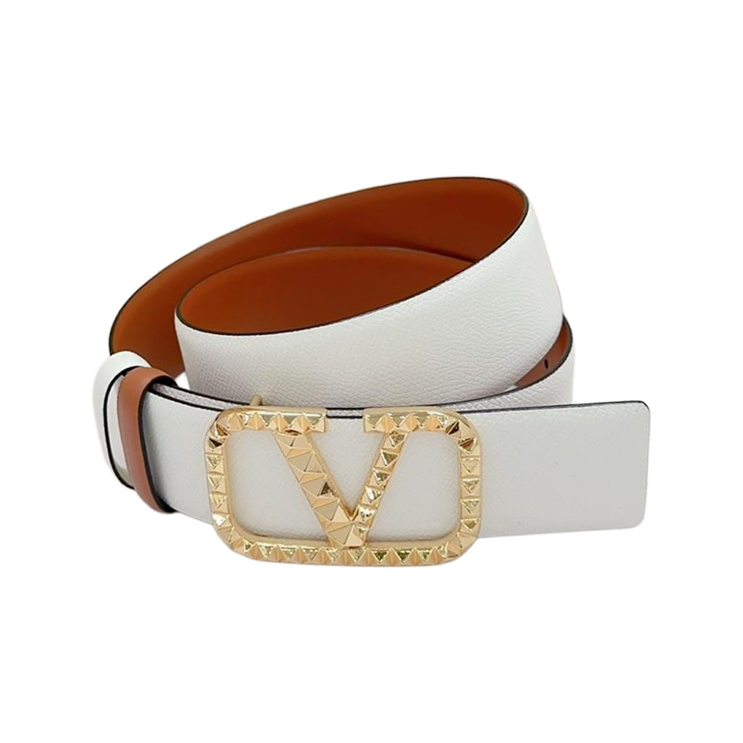 Valentino V Buckle With Rockstud Belt In White/Black/Blue/Brown/Red Calfskin With Black/Gold/Silver Hardware 40mm